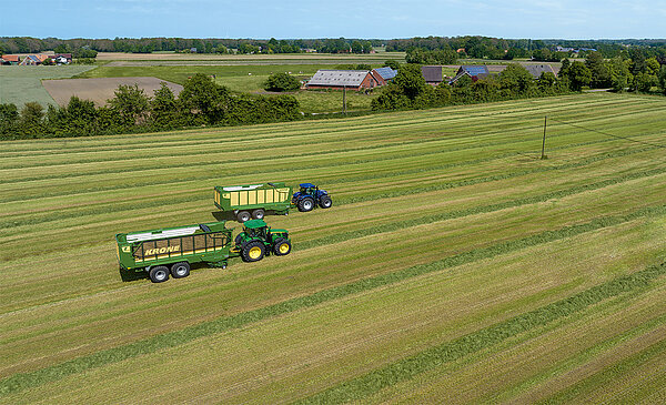 [Translate to CZ:] Ein sehr wichtiger Aspekt ist die optimale Struktur des Futters, sie trägt dazu bei, die natürliche Kau- und Verdauungstätigkeit der Tiere zu unterstützen und die Risiken von Verstopfungen und Verdauungsproblemen zu reduzieren. Gut strukturiertes Futter fördert die natürliche Verwertung und somit die Milchproduktion Ihrer Tiere. Das KRONE OptiGrass Konzept sorgt für knackiges, gut strukturiertes Futter und verhindert ein zermusen des Ernteguts zu jeder Jahreszeit.