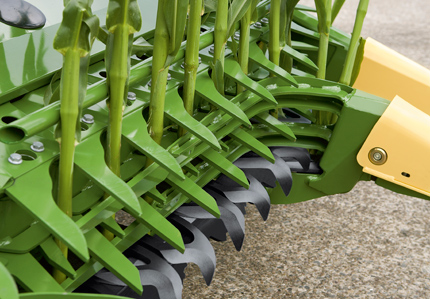 Řezací bubny KRONE mají nože uspořádané do V, takže svírají s protiostřím úhel 11°. Nadchnou vás plynulým proudem píce, velmi klidným chodem a nízkým příkonem.