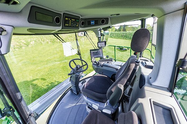 Méně stresu – více jistoty: V hustých porostech kukuřice jede řidič často proti stěně z kukuřice vysoké až 4 m. Zvednutá kabina má vyšší polohu sedadla a díky tomu má řidič lepší výhled nad sklízený porost. Znamená to méně stresu, únavy a lepší soustředění na vlastní práci. Kromě toho může lépe rozeznat případná nebezpečí.