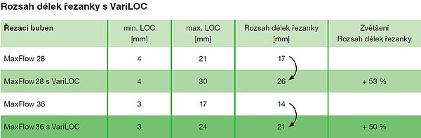 - Flexibilní délku řezanky umožní VariLOC a poloviční sada nožů