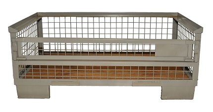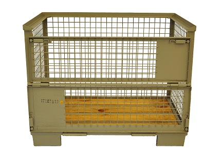 Bezeichnung: G01 | Typ: EUR Gitterbox | Abmessungen innen (L x B x H) in mm: 1200 x 800 x 800 | Abmessungen außen (L x B x H) in mm: 1240 x 835 x 970 | Leergewicht: 85 kg | Traglast: 900 kg | Stapelfaktor: 3 (Montage) / 5 (Lager)