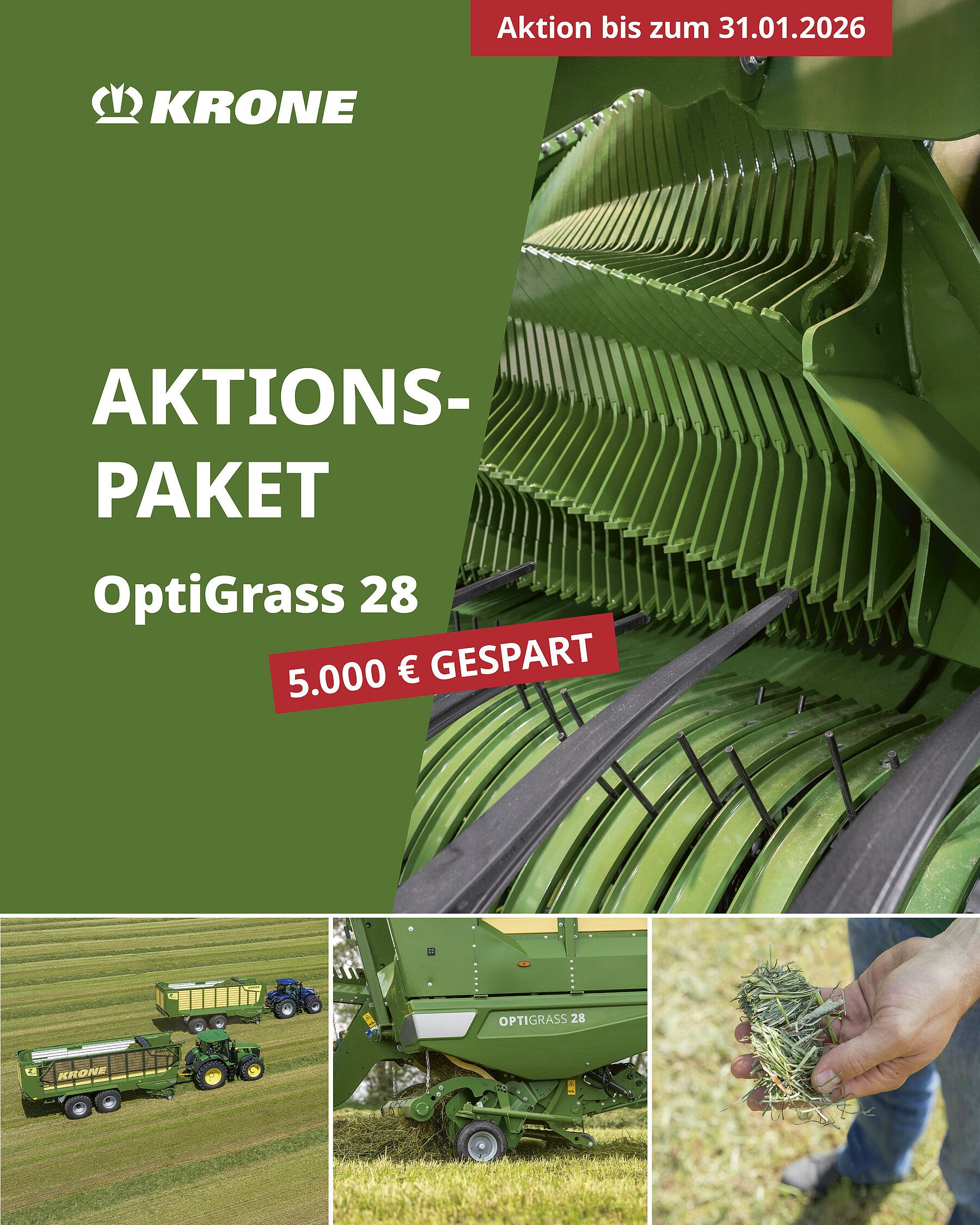 - Beinhaltet ein Rabatt in Höhe von 5.000 Euro auf das OptiGrass 28 Schneidwerk beim Kauf eines KRONE RX oder ZX.