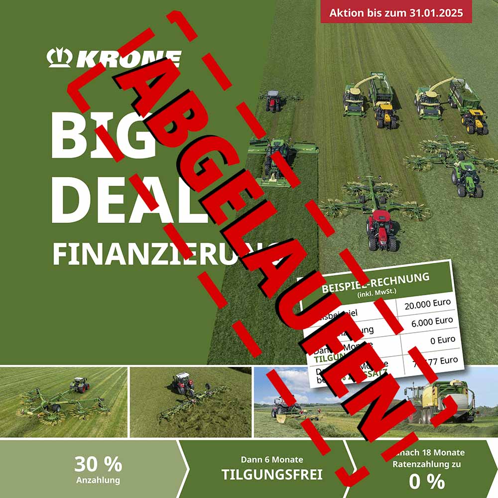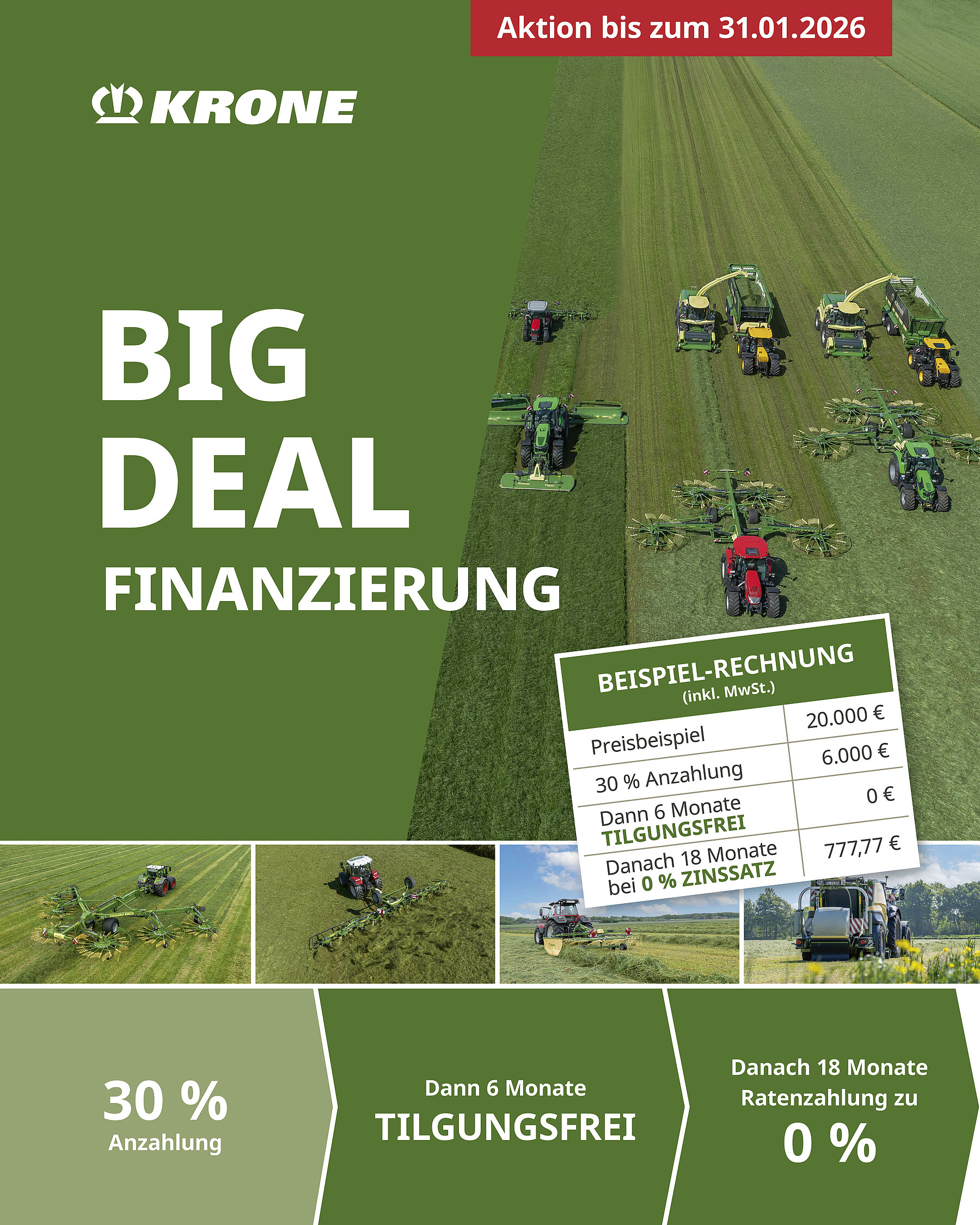 Hol dir beim Kauf einer Maschine aus dem KRONE BiG Deal Programm nicht nur eine Top-Maschine, sondern auch erstklassige Finanzierungskonditionen!