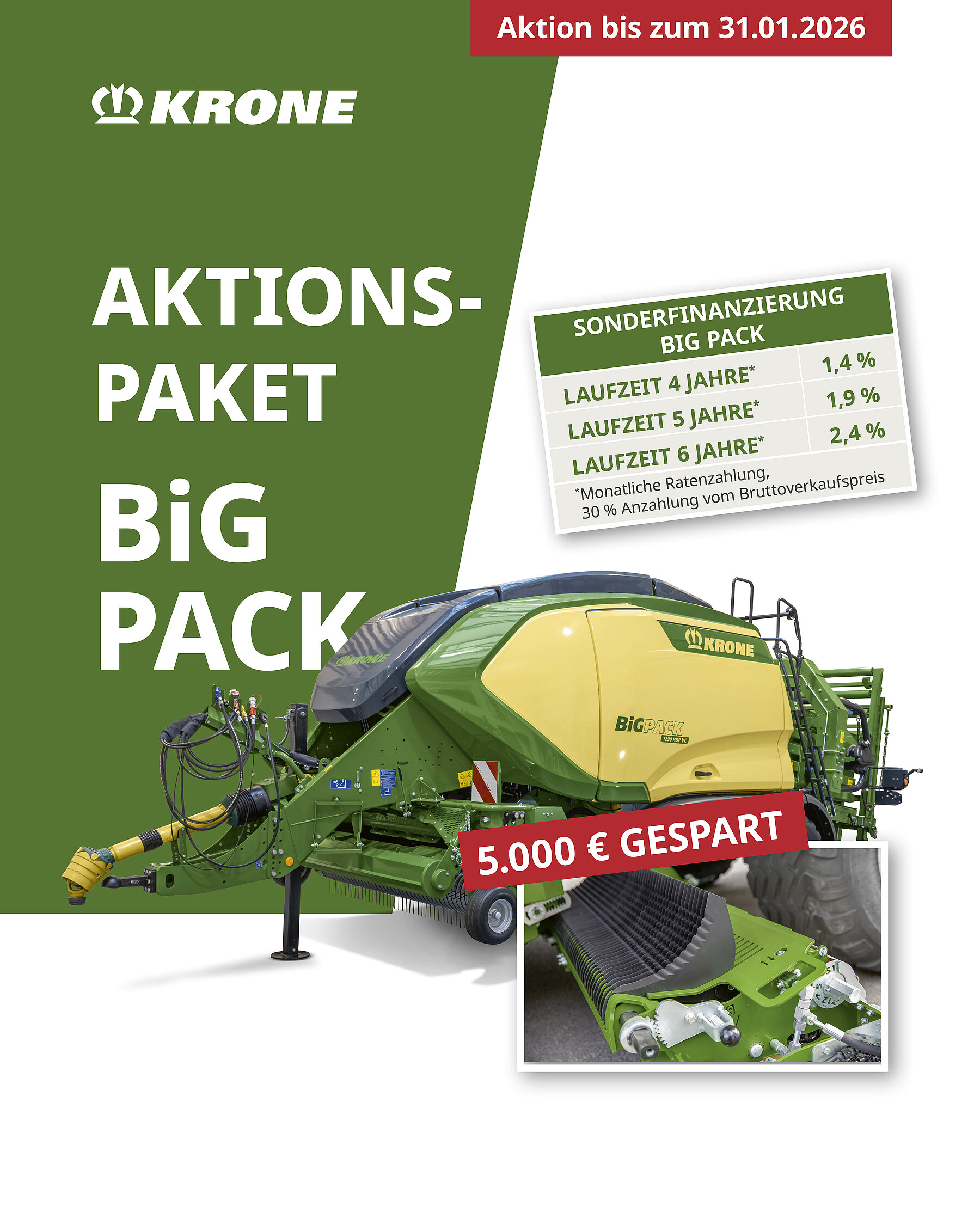 - Nur gültig bei Bestellung einer Neumaschine einer BiG Pack 1270, BiG Pack 1290 und BiG Pack 1290 HDP Preisliste 2025/2026.