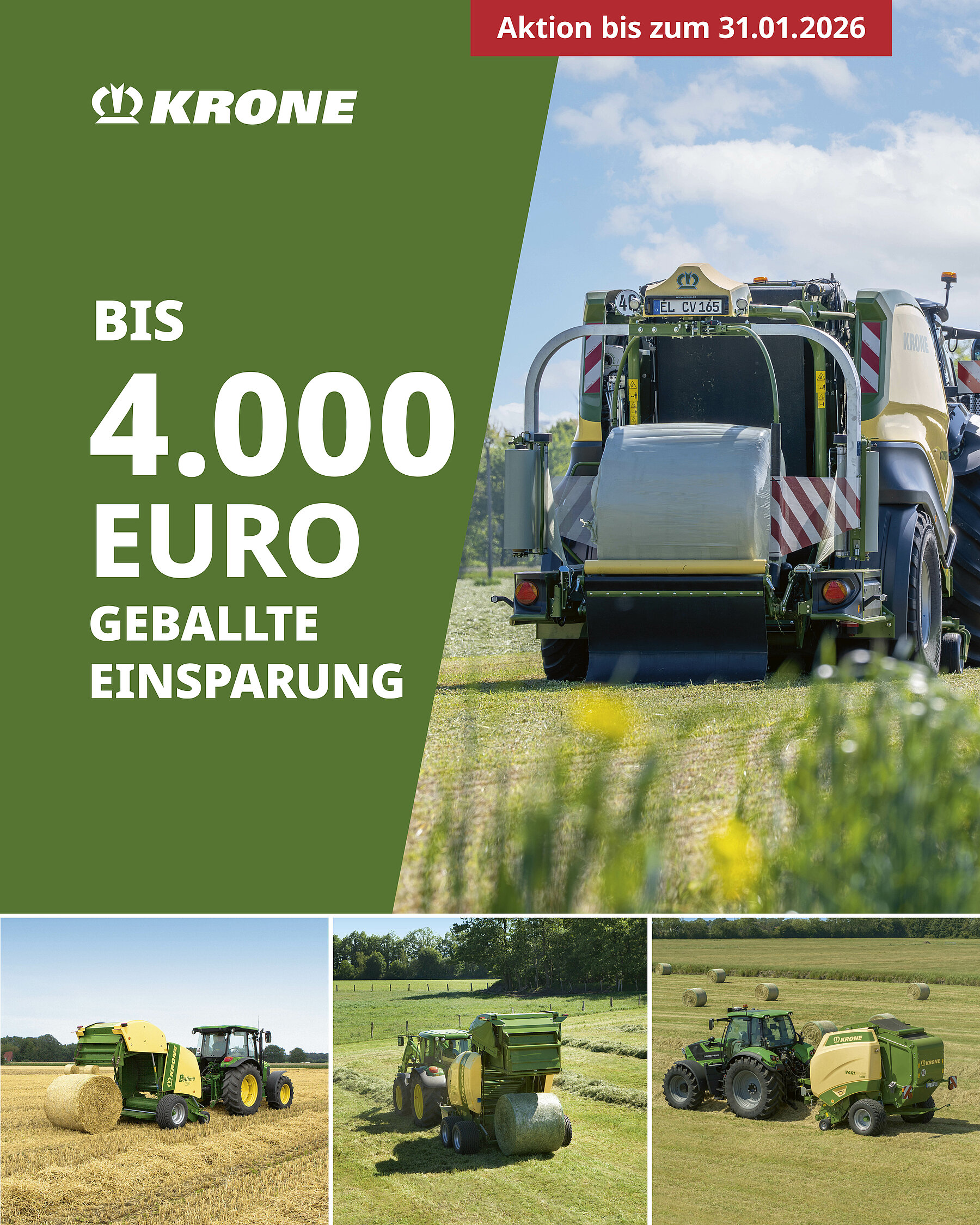 - Gilt ausschließlich beim Endverkauf einer neuen KRONE Rundballenpresse.