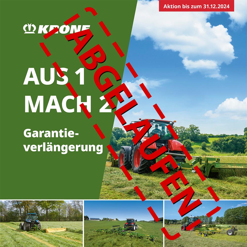 - Gilt ausschließlich beim Endverkauf einer neuen KRONE Maschine (Mähwerk, Wender, Schwader).