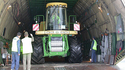 Mit einem Großraumflugzeug vom Typ Antonow 124-100 sind jetzt gleich mehr als ein Dutzend Krone-Maschinen von Hannover-Langenhagen nach Russland…