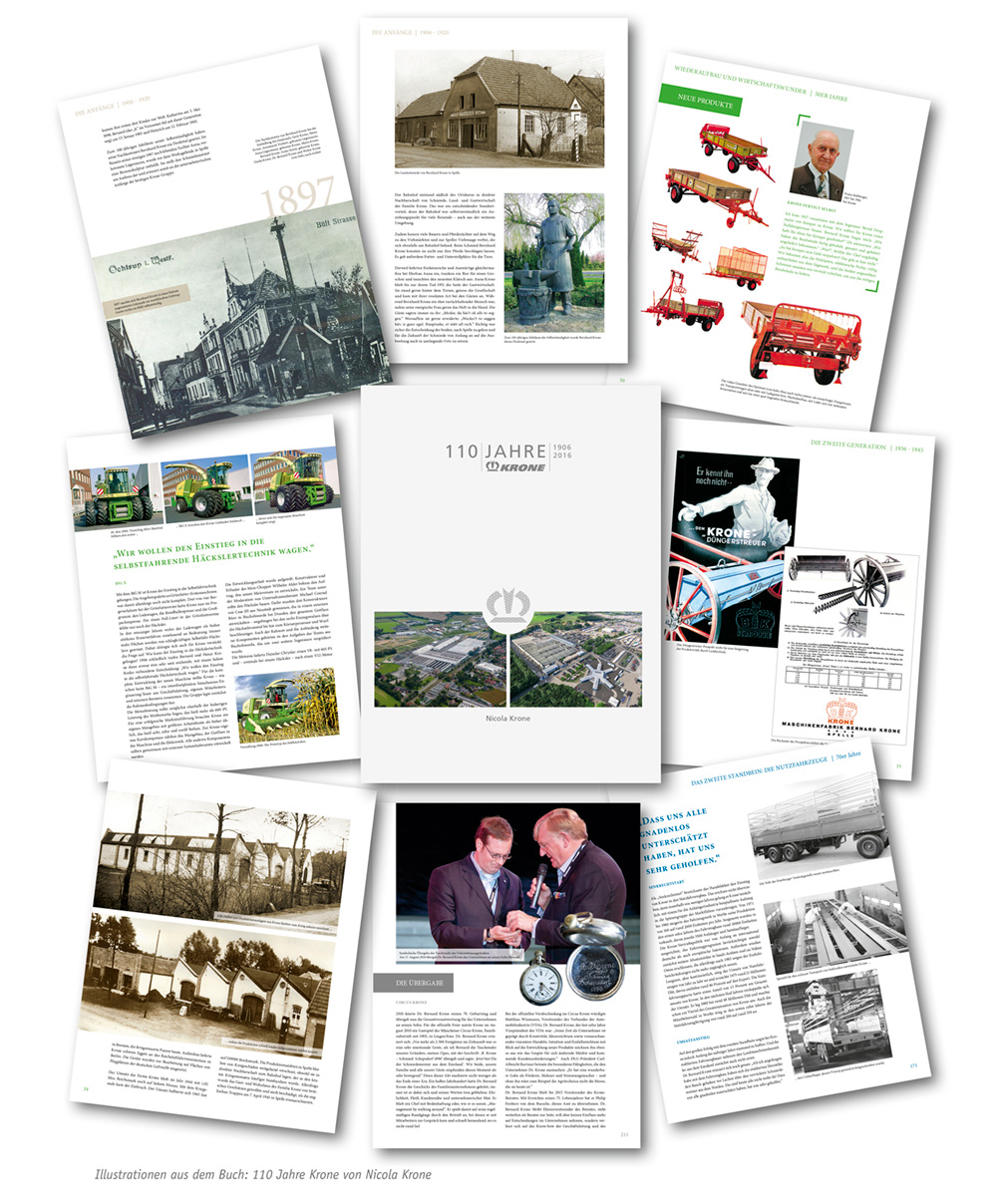 Am 8. Oktober 1906 zogen der Schmiedemeister Bernhard Krone und seine Frau Anna vom münsterländischen Ochtrup nach Spelle. Hier baute Bernhard Krone eine Landschmiede für Hufbeschlag und Reparaturarbeiten auf und legte damit den Grundstein für die heutige Krone Gruppe. Passend zum 110-jährigen Unternehmensgeburtstag hat Nicola Krone die Krone Geschichte fortgeschrieben und präsentiert nun die erweiterte Unternehmenschronik mit dem Titel „110 Jahre Krone“. Neben dem ergänzten Rückblick auf die Jahre 2006-2016 wurde auch das Layout des Buches komplett überarbeitet. Auf mehr als 250 Seiten findet der Leser zahlreiche spannende Einblicke – von den ersten Herausforderungen, die der Unternehmensgründer bewältigen musste, über strategische Entscheidungen bis hin zu den heutigen Anforderungen innerhalb der Krone Gruppe, die inzwischen von der vierten Generation geführt wird. Zahlreiche Zeitzeugenberichte und Anekdoten von ehemaligen Mitarbeitern und Kunden lockern das liebevoll illustrierte Werk auf. Das neue Buch „110 Jahre Krone“ ist auch im <link www.kroneshop.de/epages/191043.sf/de_DE/ _blank external-link-green>Krone Shop</link> erhältlich.