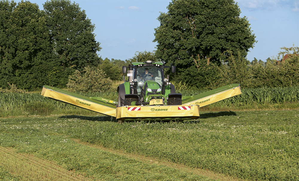 "Beim neuen Krone-Mähwerk EasyCut B 1000 ist der Name Programm. B steht für Butterfly, also Schmetterling, und 1000 steht für maximal 1.000 cm oder 10 m Arbeitsbreite. Daneben gibt es von Krone noch ein weiteres einfaches Schmet-terlings-Scheibenmähwerk ohne Aufbereiter und Schwadzusammenführung: das EasyCut B 870 mit 8,31 oder 8,62 m Arbeitsbreite. [...] Mit der Trippel-Mähkombination bestehend aus dem EasyCut F 320 und dem B 1000 lässt sich schlagkräftig mähen.", schreibt die Redaktion agrarheute in ihrem Fahrbericht.
