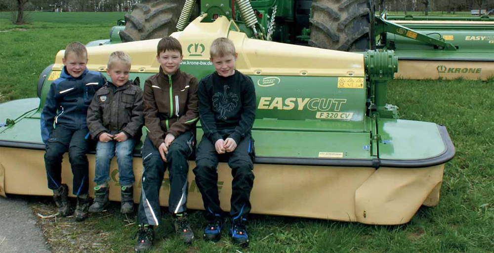Die Zeitschrift agrarKids stellt in der Mai-Ausgabe den Schönbuchhof bei Reutlingen vor. Voller Begeisterung packen dort auch die Kinder mit an, wenn es zum Beispiel mit dem KRONE Triple-Mähwerk EasyCut B 870 auf's Feld geht.