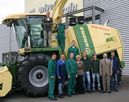 Spelle, im Juli 2011 – Mit dem Feldhäcksler in die Schule – so lässt sich in aller Kürze die Krone Young Professionals Tour beschreiben. Hintergrund dieser Aktion: Durch den Besuch von Schulen mit einem 850 PS-starken Feldhäcksler soll die Neugier der Schüler für Landtechnik und das Unternehmen Krone geweckt werden. Dazu Krone Personalleiter Klaus Reinhardt: „Wir stellen immer wieder fest, dass junge Menschen fasziniert sind, wenn sie unsere fertigen Produkte sehen. Denn wer erwartet schon, dass in einer Landmaschine mehr PS stecken als in den Rennwagen von Sebastian Vettel oder Michael Schumacher. Außerdem weiß kaum ein Mensch, dass Landtechnik eine echte Zukunftsbranche ist. Insofern haben wir uns überlegt, dass wir unsere Azubi-Suche mal ganz anders gestalten und mit einem fertigen Produkt zu den Schulen fahren.“