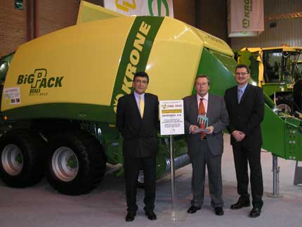 Spelle/Zaragoza (Spanien), Februar 2006 – Mit einem Preis für „Innovative Technik“ ist das MultiBale-System der Krone Großpackenpresse Big Pack jetzt auf der Fachmesse FIMA im spanischen Zaragoza ausgezeichnet worden. Denn die MultiBale-Funktion bietet die Möglichkeit, einen Ballen wahlweise zum herkömmlichen 2,70 m langen Großpacken zu pressen oder diesen Großpacken in bis zu sechs Kleinballen zu unterteilen. Die Ballenlänge der Kleinballen kann dabei von 0,45 m bis 1,35 m stufenlos eingestellt werden. Diese praxisgerechte Option bietet Krone mit der Baureihe Big Pack 1270 VFS/XC als einziger Hersteller an. Für das innovative MultiBale-Verfahren hatte Krone bereits eine DLG-Silbermedaille erhalten.