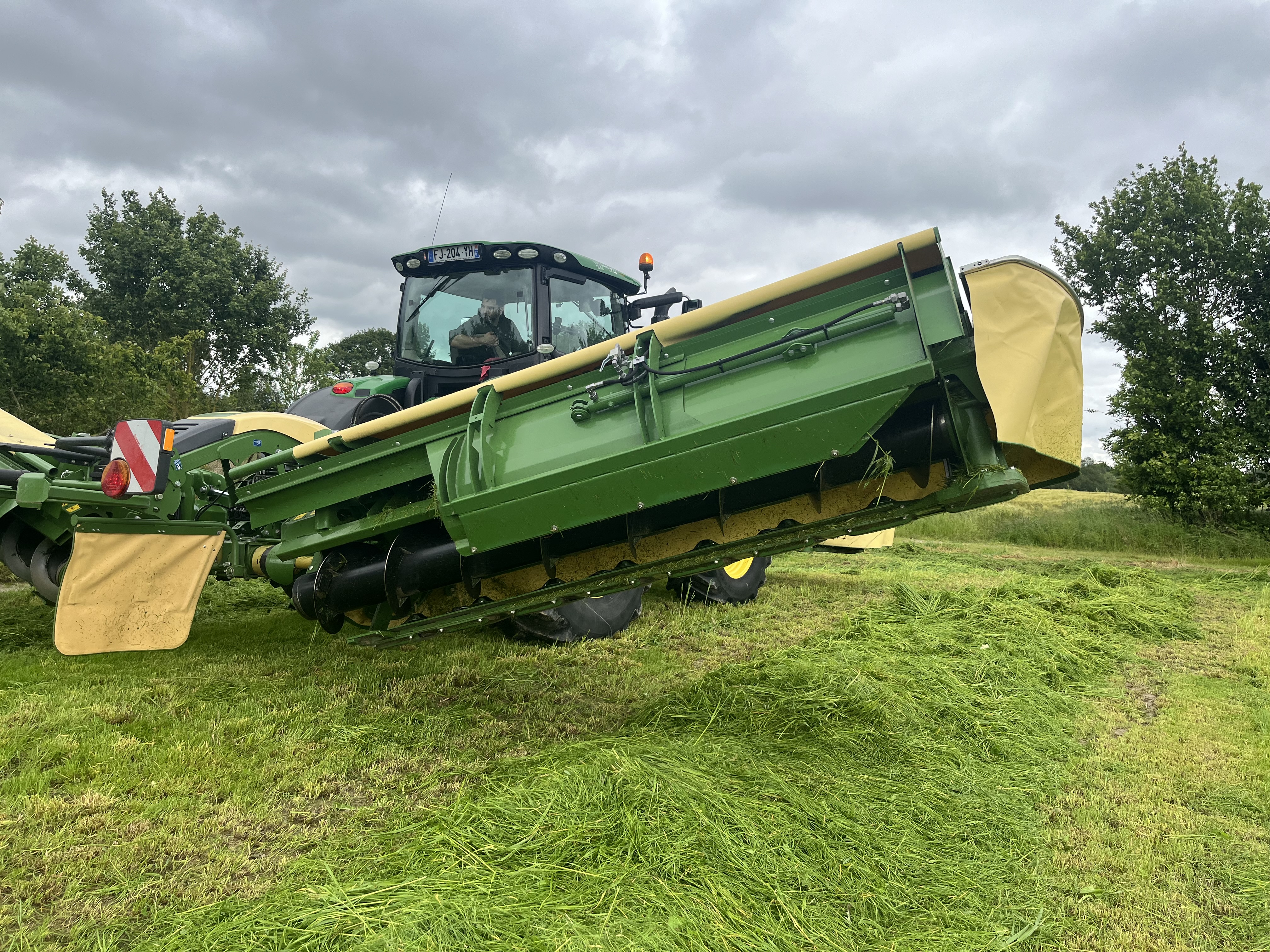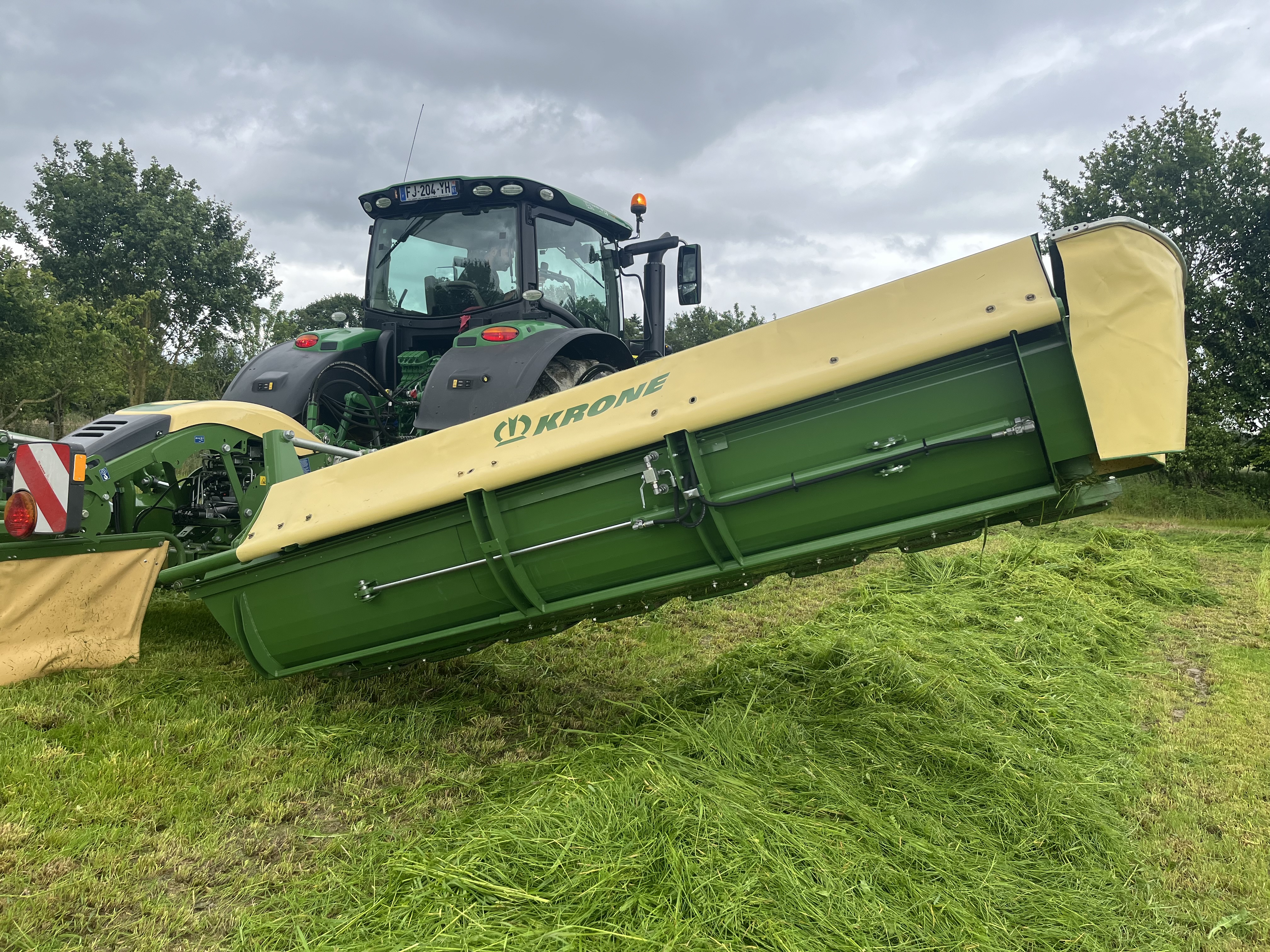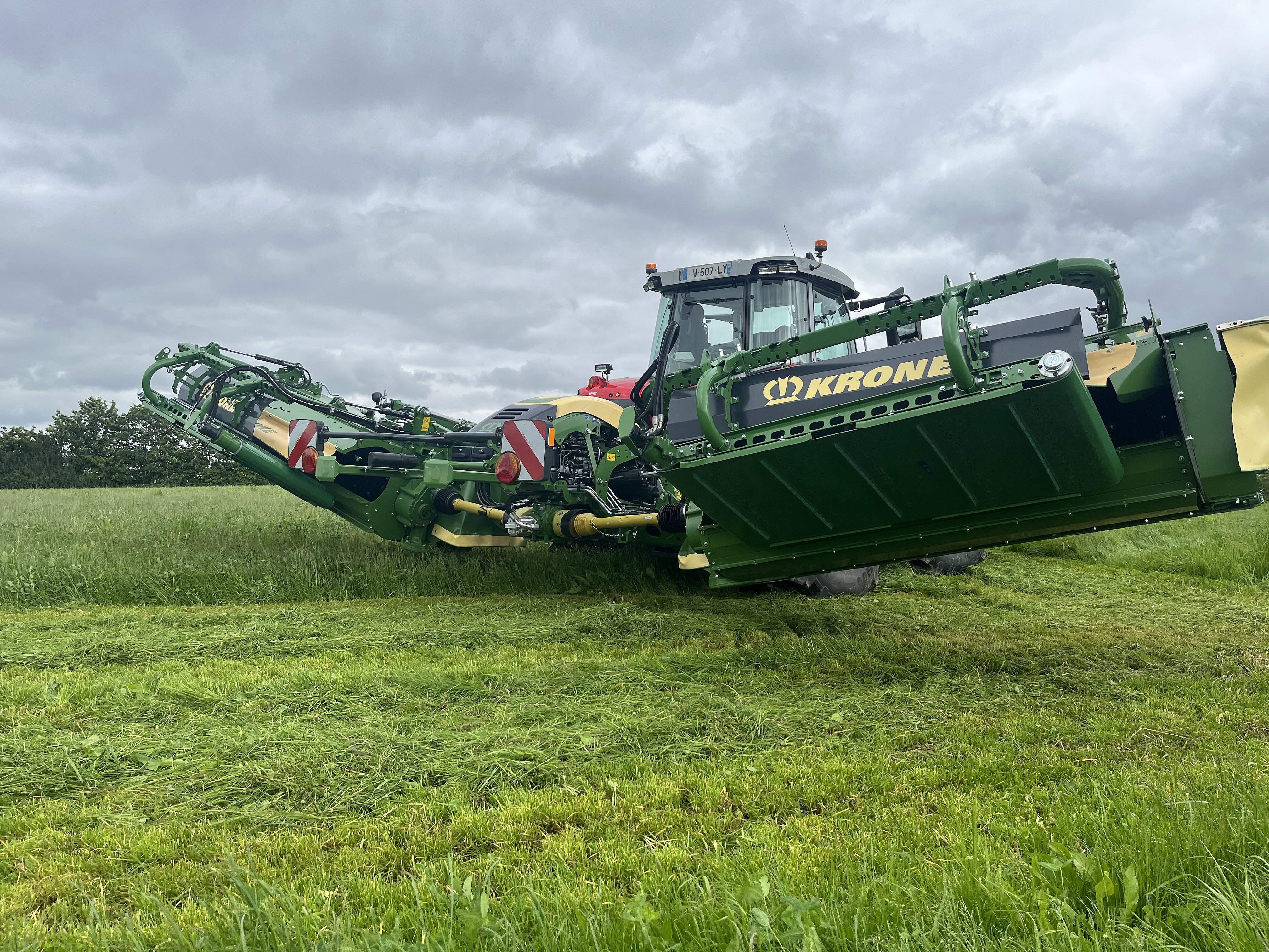 Les utilisateurs de ce modèle arrière porté pourront eux-aussi s’adapter plus facilement aux volumes, aux types de fourrages ainsi qu’aux différentes solutions de reprises grâce à la nouvelle option «KRONE GrassMove». Il s’agit d’une tôle déflectrice située à droite de la sortie du conditionneur. Pilotée hydrauliquement depuis la cabine à l’aide d’un distributeur double-effet, elle permettra à l’utilisateur de venir resserrer son andain contre celui de la frontale ou au contraire écarter son andain sur la largeur du conditionneur sans avoir à descendre de la cabine pour venir régler la position de volets ou de tôles déflectrices en fonction des conditions ou de son souhait d’andain. Il sera alors possible de créer des andains, en combinaison avec une faucheuse frontale de 3,20m, d’une largeur théorique de 3 à 4,50 m. A la clé, c’est plus de confort et de sécurité pour l’opérateur, et une qualité de fourrage préservée.