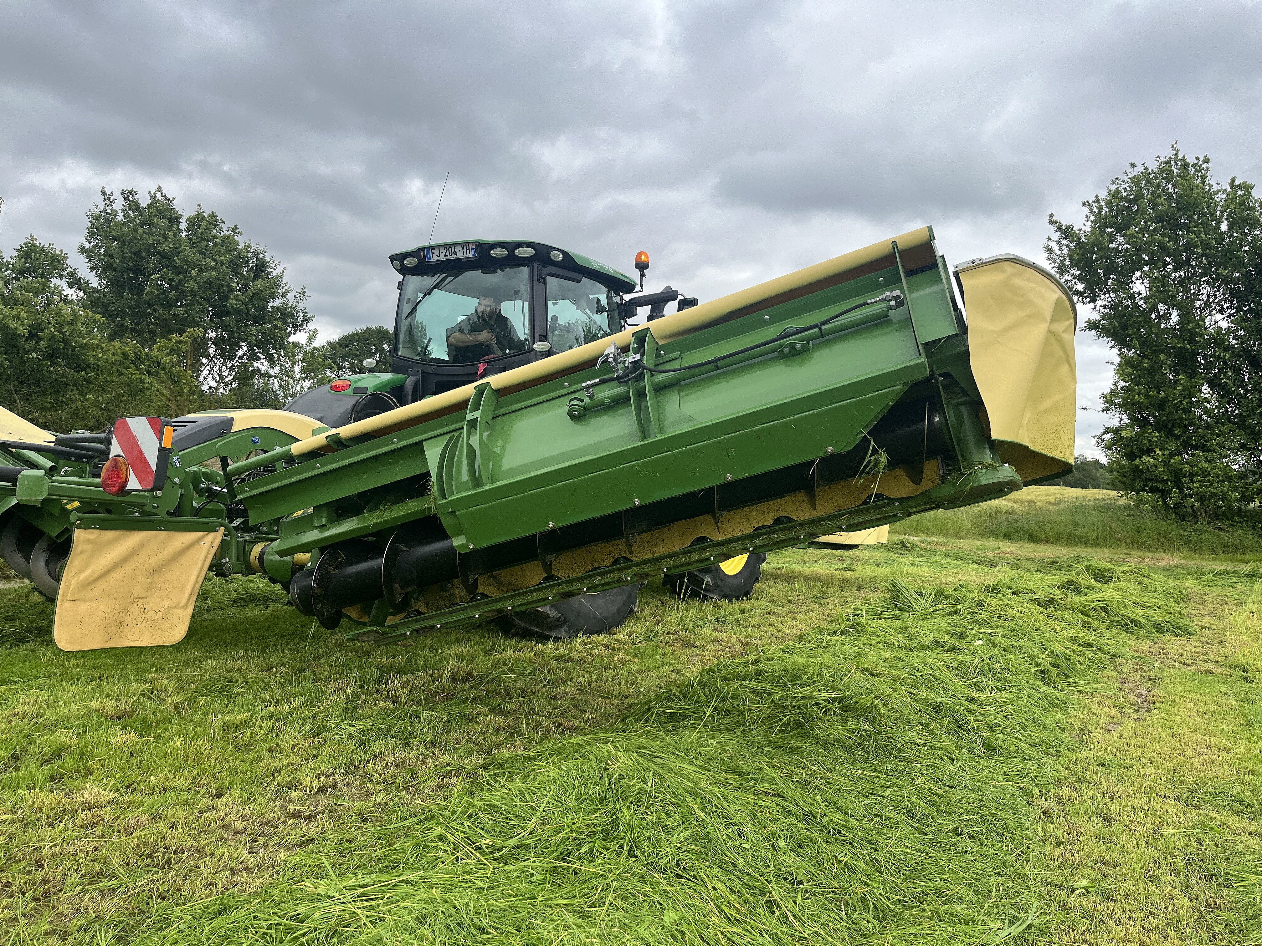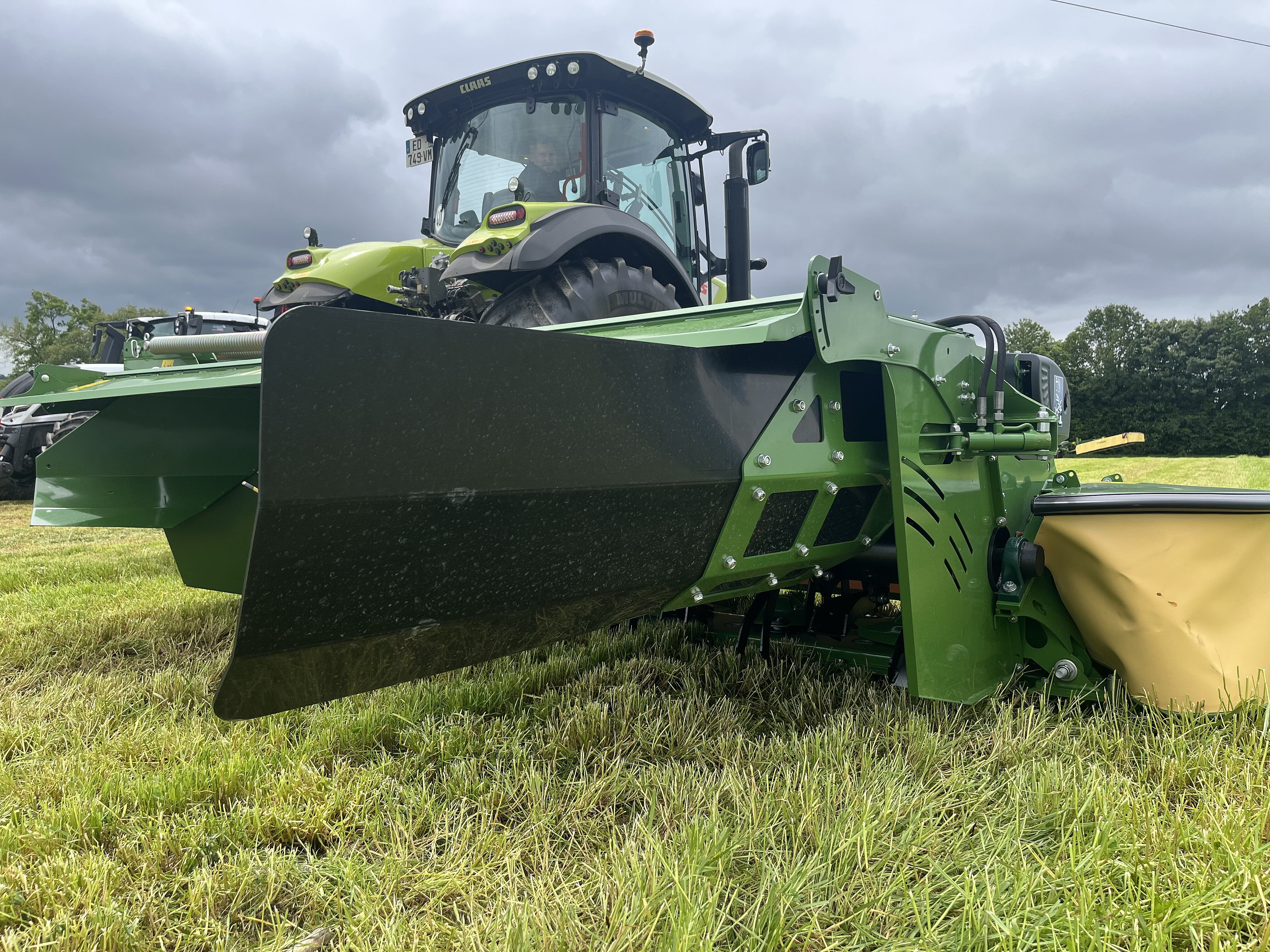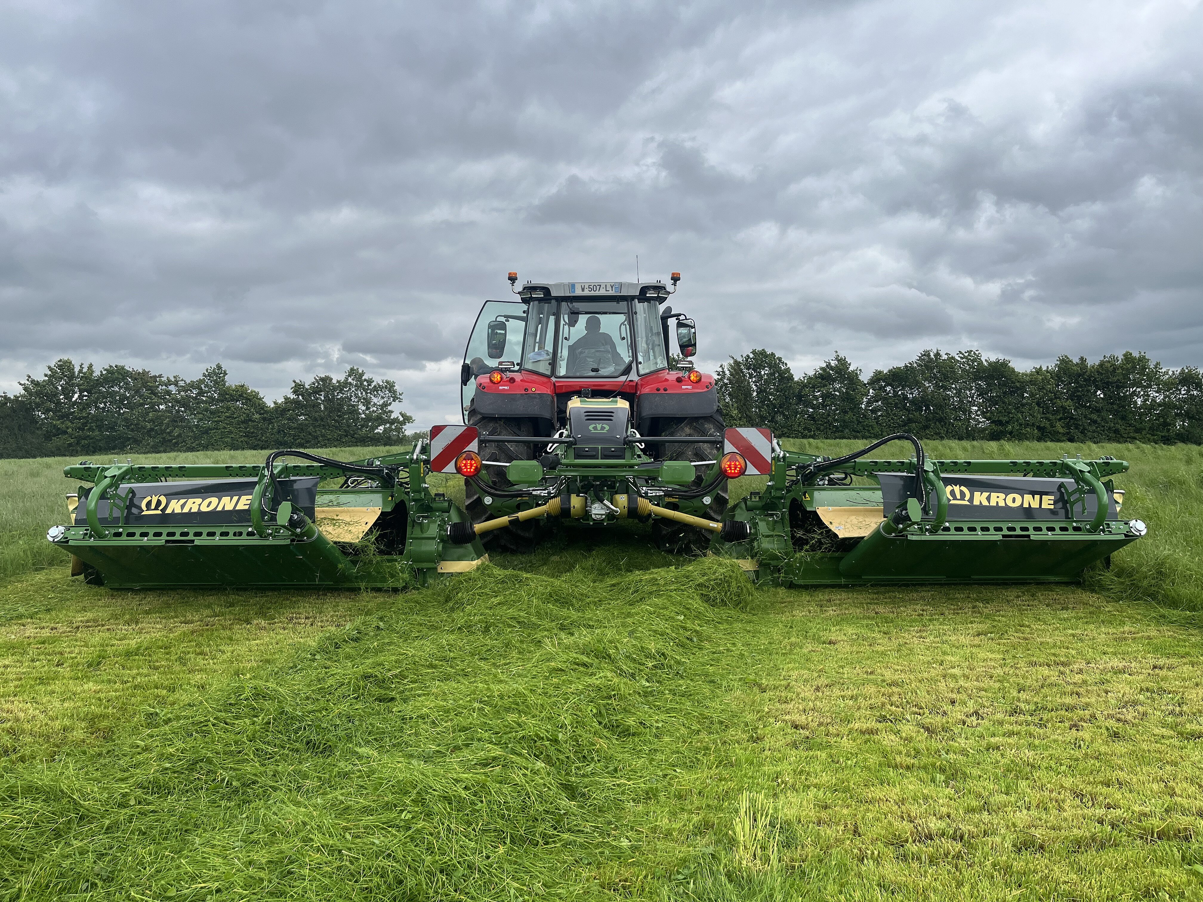 Les utilisateurs de ce modèle arrière porté pourront eux-aussi s’adapter plus facilement aux volumes, aux types de fourrages ainsi qu’aux différentes solutions de reprises grâce à la nouvelle option «KRONE GrassMove». Il s’agit d’une tôle déflectrice située à droite de la sortie du conditionneur. Pilotée hydrauliquement depuis la cabine à l’aide d’un distributeur double-effet, elle permettra à l’utilisateur de venir resserrer son andain contre celui de la frontale ou au contraire écarter son andain sur la largeur du conditionneur sans avoir à descendre de la cabine pour venir régler la position de volets ou de tôles déflectrices en fonction des conditions ou de son souhait d’andain. Il sera alors possible de créer des andains, en combinaison avec une faucheuse frontale de 3,20m, d’une largeur théorique de 3 à 4,50 m. A la clé, c’est plus de confort et de sécurité pour l’opérateur, et une qualité de fourrage préservée.