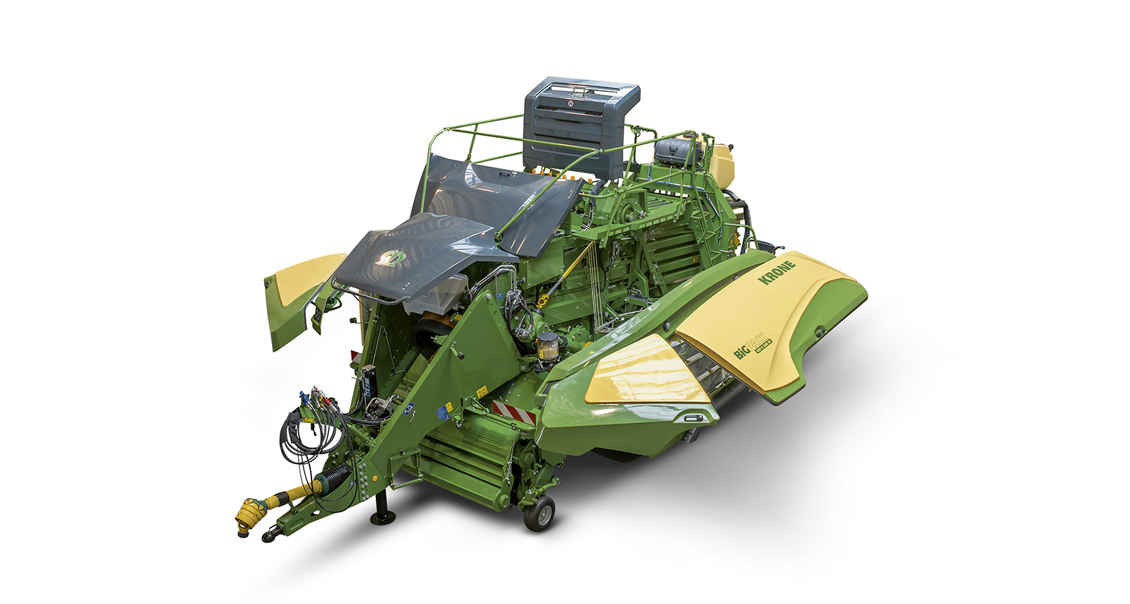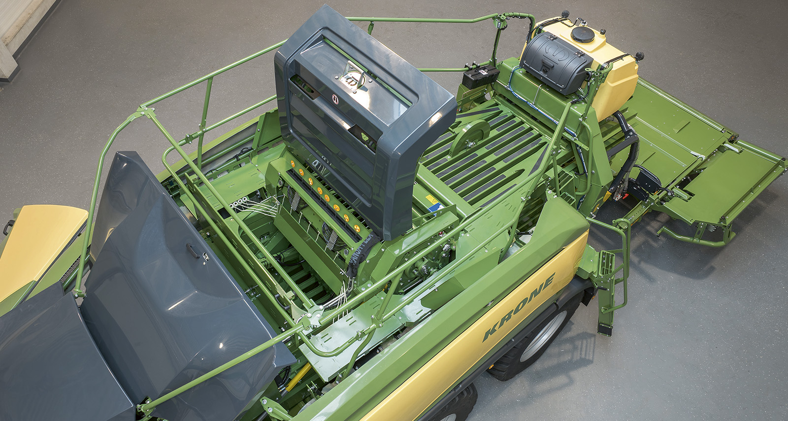 Der patentierte Antrieb mit integrierter Überlastkupplung bildet die Grundlage für hohen Durchsatz bei maximaler Pressdichte und steht damit exemplarisch für die funktionale Leistungsfähigkeit der Maschine. Die Active Pick-up gewährleistet eine saubere und verlustarme Aufnahme des Ernteguts, während das VariCut-Schneidwerk präzise und flexibel einstellbare Schnittlängen ermöglicht.