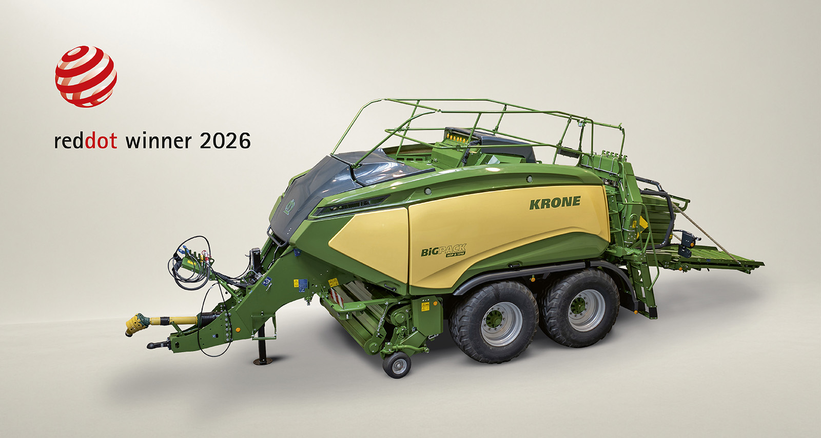 Spelle, April 2026: KRONE erhält erstmals in seiner Unternehmensgeschichte eine internationale Design-auszeichnung: Die Großpackenpresse BiG Pack HDP II 1290 (VC) wurde mit dem Red Dot Award in der Kategorie Product Design prämiert. Mit dieser Auszeichnung würdigt eine unabhängige Fachjury nicht allein das äußere Erscheinungsbild der Maschine, sondern vor allem die Qualität des Designs in seiner Gesamtheit.