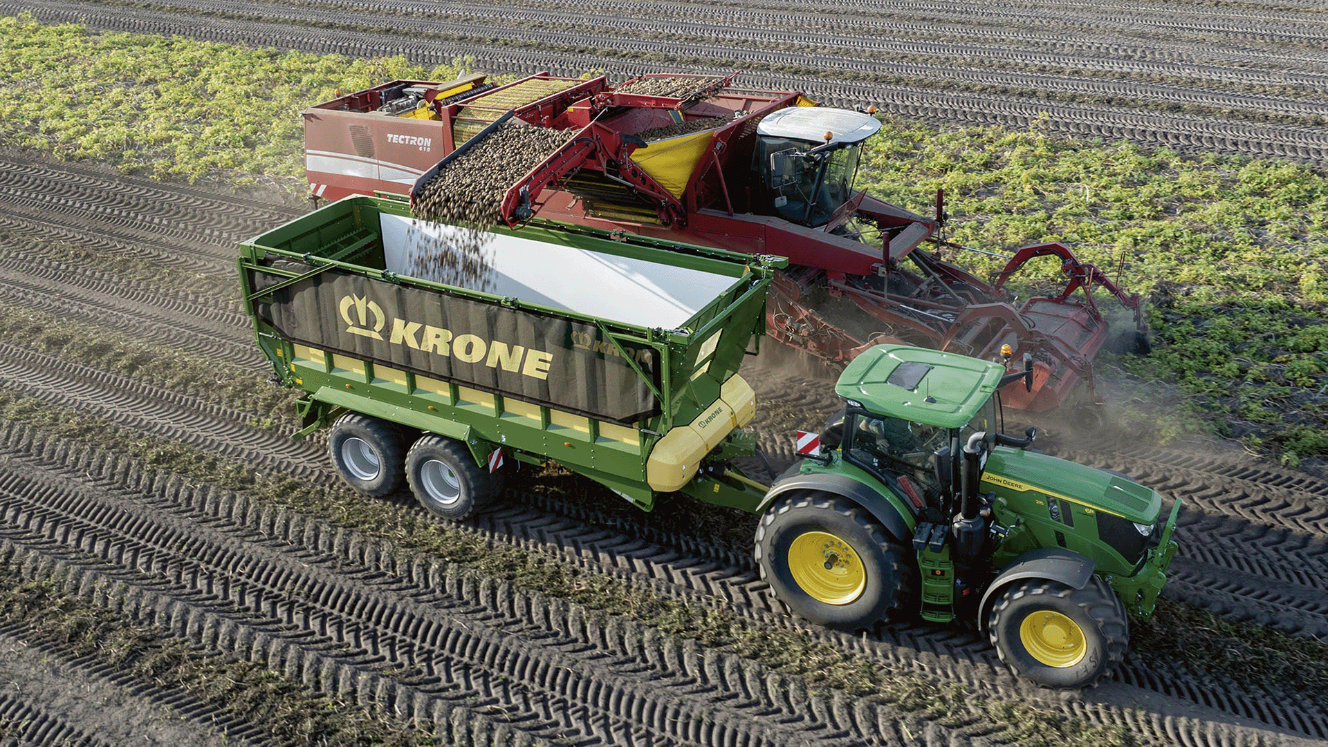 Der gewichtssparende und extrem stabile Grundrahmen sorgt in Verbindung mit den durchgehenden hohen Bordwänden dafür, dass dieser kompakt gebaute Transportwagen eine hohe Nutzlast mit einem Ladevolumen von bis zu 36 m3 ermöglicht. Das aus mehrlagigem robustem Gewebe gefertigte und mit einer transparenten Vorderwand verbundene Transportband wird hydraulisch über zwei Zugketten in Richtung Heckklappe gezogen. Die Geschwindigkeit des Bandes kann dabei stufenlos über die Durchflussmenge des Schleppers variiert werden. Dabei wird das Ladegut sehr schonend und ohne Stauchung befördert. Durch die federnde Eigenschaft des Transportbands wird der Aufprall der Ladegüter beim Beladen abgedämpft. Besonders druckempfindliche Transportgüter, wie etwa Hackfrüchte und Gemüse, werden so nicht beschädigt. Auch feine Schüttgüter wie Getreide lassen sich ohne Verluste transportieren, da die Seitenwände mithilfe von Gummilippen gut abgedichtet sind.