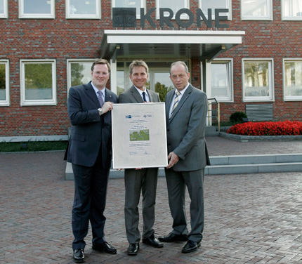 Mit einem Beitrag von 15.000 € sorgt die Bernard Krone Holding GmbH & Co. KG jetzt für den Abschluss der IHK-Sponsoringaktion im Landkreis Emsland. "Das Wachstum der Krone-Gruppe steht beispielhaft für die wirtschaftliche Dynamik des Emslandes in den vergangenen Jahrzehnten. Es freut mich, dass gerade Ihr Unternehmen jetzt den Schlussakkord setzt. Dabei ist Ihr finanzielles Engagement überaus großzügig", bedankte sich Marco Graf, Hauptgeschäftsführer der IHK Osnabrück - Emsland - Grafschaft Bentheim, bei Bernard Krone und Alfons Veer aus der Krone-Geschäftsführung. „Die wirtschaftliche Entwicklung des Emslandes ist eng mit dem Ausbau der Verkehrsinfrastruktur verknüpft. Darum helfen wir auch an dieser Stelle gerne mit“, begründet Bernard Krone die Beteiligung an der Sponsoringaktion. Für beide Unternehmensstandorte in Spelle und Werlte ist die E 233 eine wichtige Verbindung in Richtung der deutschen Seehäfen und Skandinavien. „Unsere Kunden können nur Geld verdienen, wenn die Fahrzeuge rollen und nicht im Stau stehen. Somit sehen wir unseren Beitrag auch als Return on Investment für die Käufer unserer Fahrzeuge“, erläutert Alfons Veer weiter. Letztlich komme diese Maßnahme aber allen Verkehrsteilnehmern auf dieser Strecke zu Gute.