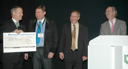 „Wir haben bewusst auf den Versand von Weihnachtsgrüßen verzichtet, um die ersparte Summe in die zukünftigen starken Typen zu investieren“, erläuterte Krone Geschäftsführer Gero Schulze Isfort anlässlich der Übergabe. „Wir wissen, dass uns in den nächsten Jahren die geburtenschwachen Jahrgänge erwarten, und da möchten wir die künftigen Schulabgänger schon heute auf die faszinierende Arbeitswelt Landtechnik aufmerksam machen.“