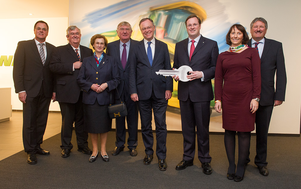 Spelle, 27. November 2014 – Mit der offiziellen Schlüsselübergabe durch den niedersächsischen Ministerpräsidenten Stephan Weil wurde das Krone Technologiezentrum feierlich eingeweiht. „Krone festigt mit einem Investitionspaket von rd. 50 Mio. Euro seine Position als innovatives Spitzenwerk und unterstreicht gleichzeitig seine Treue zur Region“, bedankte sich Weil in seinem Grußwort.