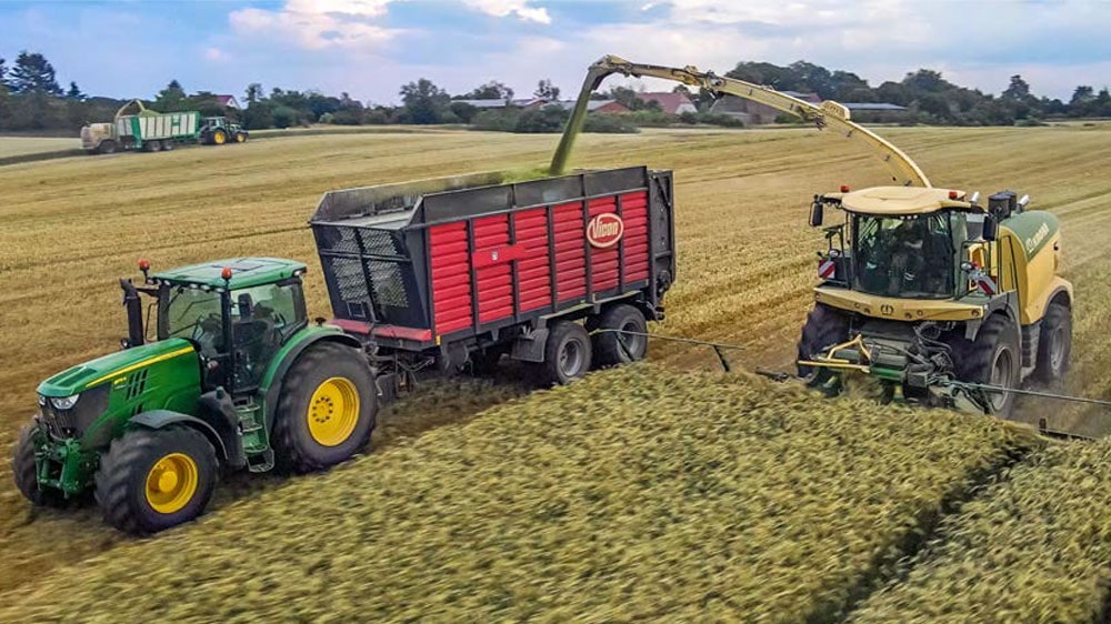 "Zwar setzt Dominik Borgelt vom Agrarservice Borgelt seinen BiG X 1180 mit XCollect-Maisgebiss erst seit einem Jahr für die GPS-Ernte ein, konnte aber bereits mit seinen anderen Krone- Häckslern mit Maisgebiss gute Erfahrungen sammeln. Auch seine Kunden sind von der Arbeitsqualität der Kombination begeistert – es muss nicht immer ein XDisc-Direktschneidwerk sein. Das XCollect hat eine größere Arbeitsbreite, ist schnell einsatzbereit und fördert die Pflanzen geordnet zum Häckselkanal, sodass die Trommel sauber schneiden kann." Die Redaktion Traction hat den KRONE BiG X mit einem XCollect in GPS getestet.