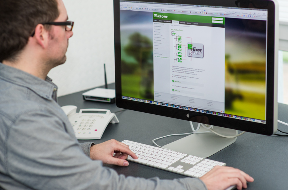 Spelle, 16. Dezember 2013 – Für jeden Kunden die maßgeschneiderte Maschine – für solche Wünsche bietet Krone jetzt den neuen Online-Produkt-Konfigurator EasySelect an. Damit kann jeder Kunde am Computer seine persönliche Krone Wunschmaschine zusammenstellen. Dabei führt der Online-Konfigurator EasySelect den User durch ein intuitives Bedienmenü. Die Eingabe verschiedener Kriterien unterstützt den Konfigurator bei der weiteren Ausstattungsauswahl; so werden beispielsweise Achsen nur mit der jeweils zugelassenen Bereifung erlaubt.
