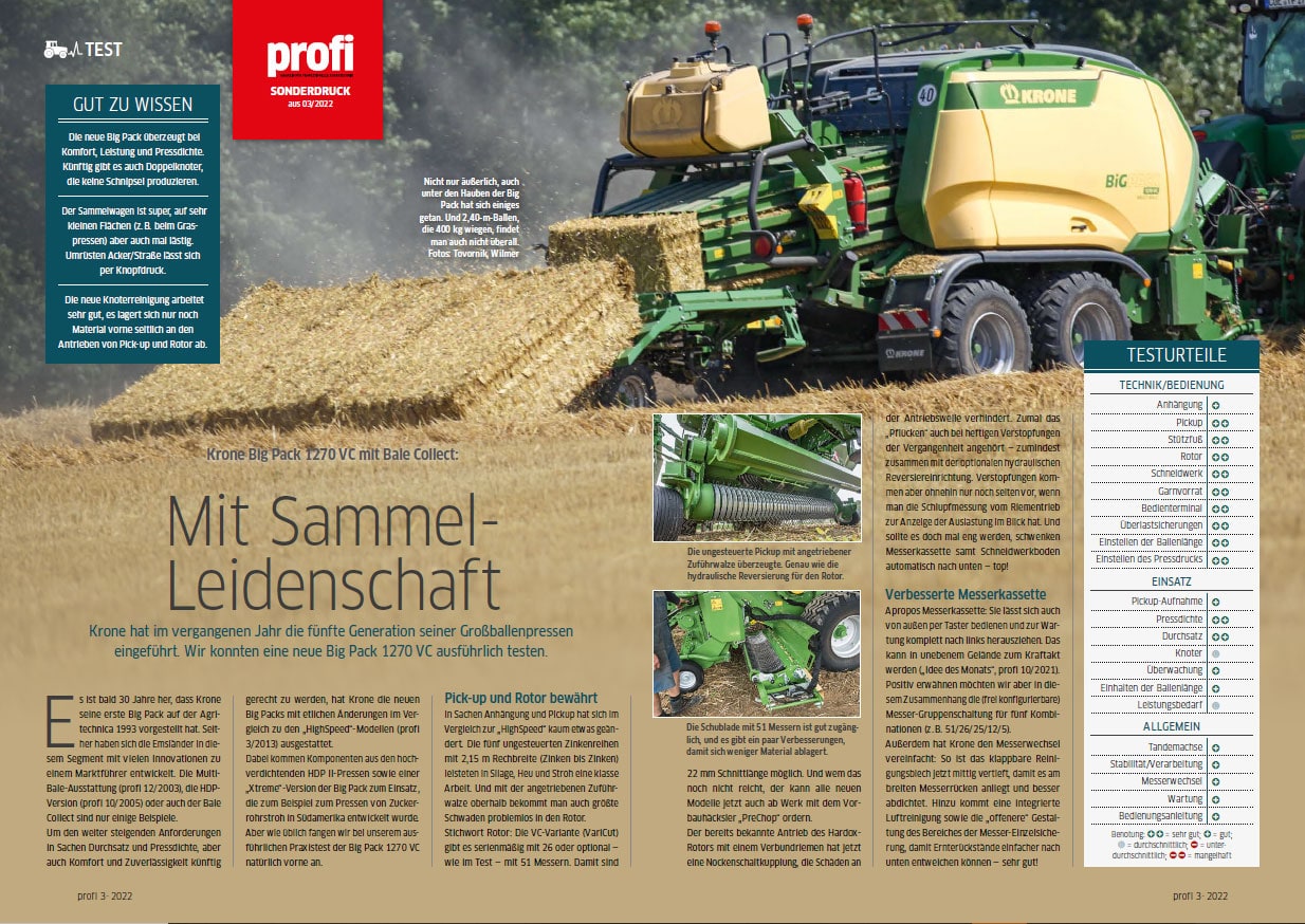 profi 03-2022: Testbericht KRONE BiG Pack 1270 VC mit BaleCollect