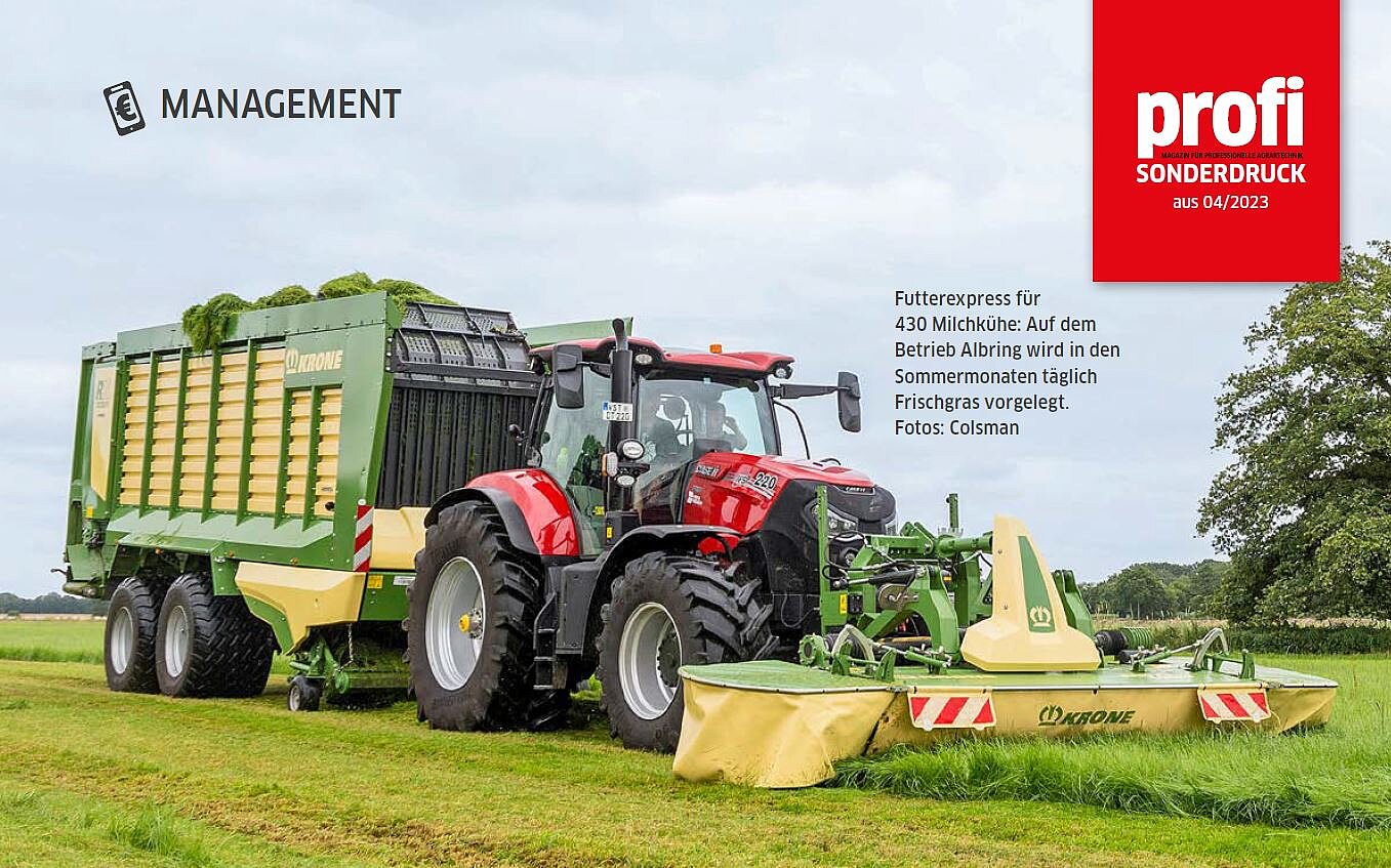 Für eine noch höhere Milchleistung aus dem Grundfutter gewinnt die Frischgrasfütterung zunehmend an Aufmerksamkeit. Steigende Lagerkosten von Silagen, Heumilchprogramme und andere treibende Faktoren lassen die Frischmassefütterung in neuem Licht erscheinen. Die Redaktion profi hat einen Betrieb besucht, der mit moderner Technik täglich rund 400 Kühe versorgt.