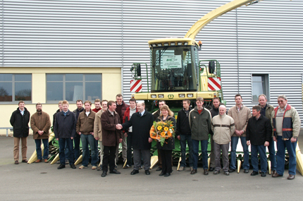 Andervenne, 2. April 2004 – Ab sofort kann das Lohnunternehmen Reddehase auch zehn Reihen Mais auf einen Schlag häckseln. Möglich wird das durch die Anschaffung eines Krone Exakt-Feldhäckslers Big X, der alternativ mit einem zehnreihigen Maisgebiss oder mit einer 3 m breiten Pickup für die Grasbergung ausgerüstet werden kann. Damit ist das Lohnunternehmen Reddehase nunmehr bestens für leistungsstarke Häckselarbeiten ausgestattet und bietet für die kommende Sai-son modernste Häckseltechnik in den Arbeitsbreiten 6, 8 und 10 Reihen an. Der neue 605 PS-starke Big X von Krone wurde jetzt offiziell von Hans-Dieter Heet, Krone-Verkaufsleiter Großmaschinen, an das gesamte Reddehase-Team überreicht.
