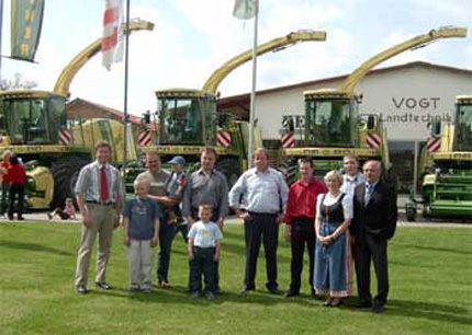 Bonbruck, im Mai 2005 – Hans Vogt, Inhaber der Firma Benedikt Vogt in Bonbruck, überreichte kürzlich gleich vier Krone Häcksler an bayrische Kunden. Rechtzeitig zur Saison entschieden sich Willi Brey, Rupert Waitl, Martin Marschmann und Josef Kreuzpointner für die Schlagkraft des Krone Häckslers. Abgestimmt auf die jeweiligen Einsatzbedingungen sind alle vier Big X mit der Big X Pickup EasyFlow 3000 ausgerüstet; für die Maisernte wählten zwei Lohnunternehmer ein Maisgebiss EasyCollect 7500 mit 7,5 m Arbeitsbreite; die beiden anderen entschieden sich für die Variante EasyCollect 6000 mit 6 m Arbeitsbreite.