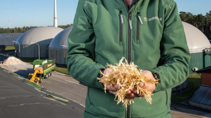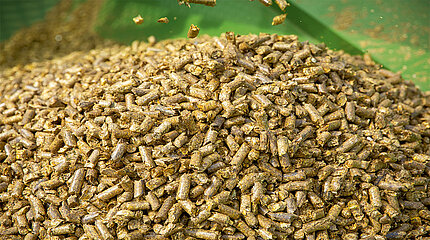 "Landwirt Bernd Pommerehne aus Lüchow (Mecklenburg-Vorpommern) ersetzt Mais durch Strohpellets. Diese erzeugt er mit der Presse "Premos" von Krone…