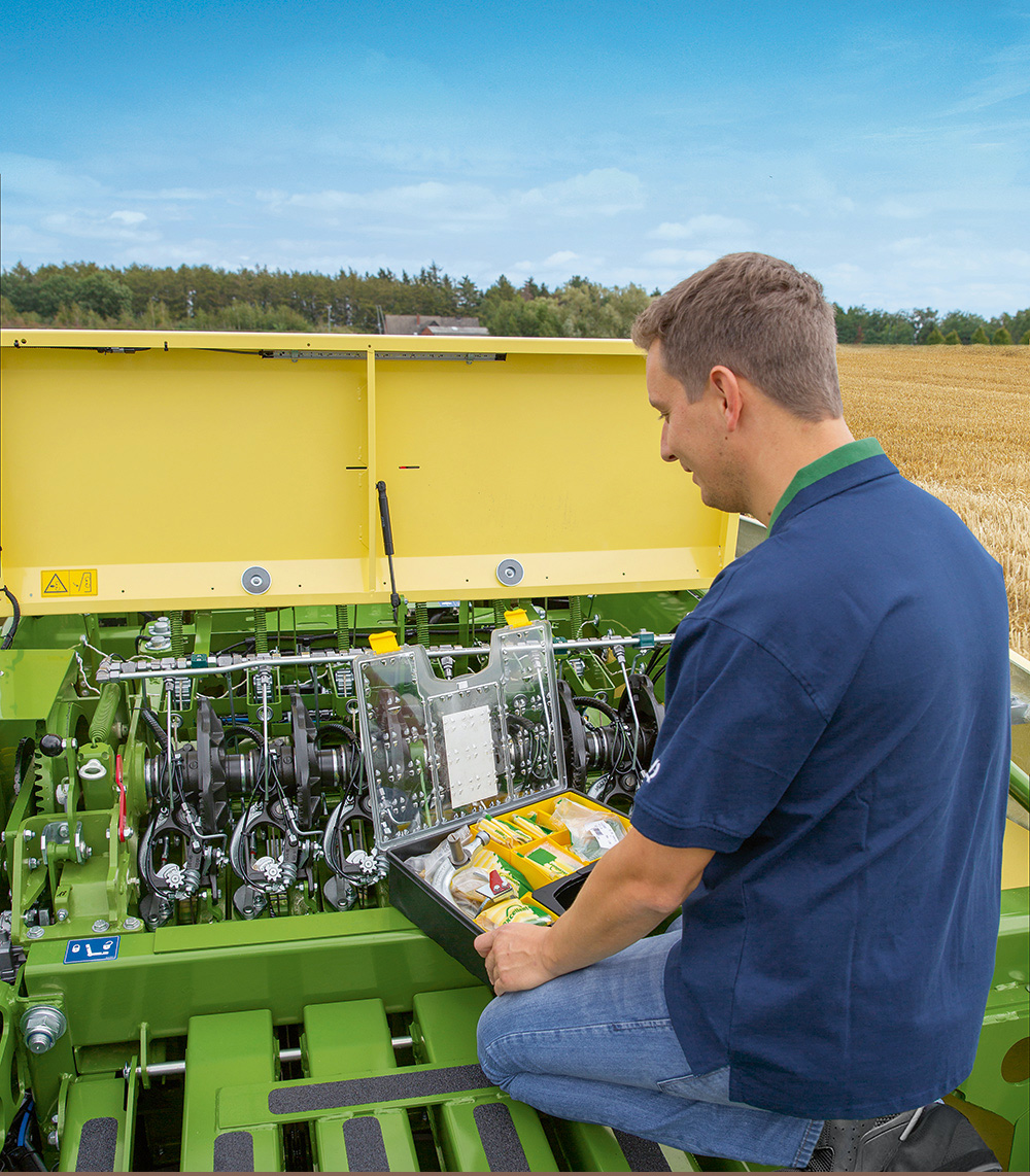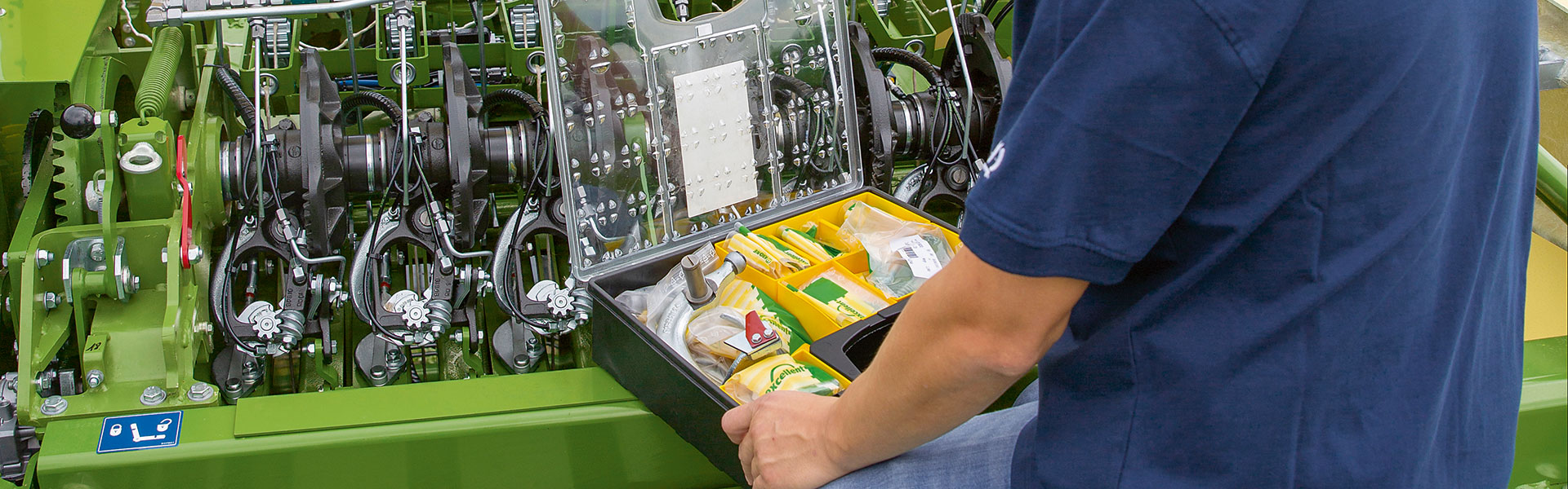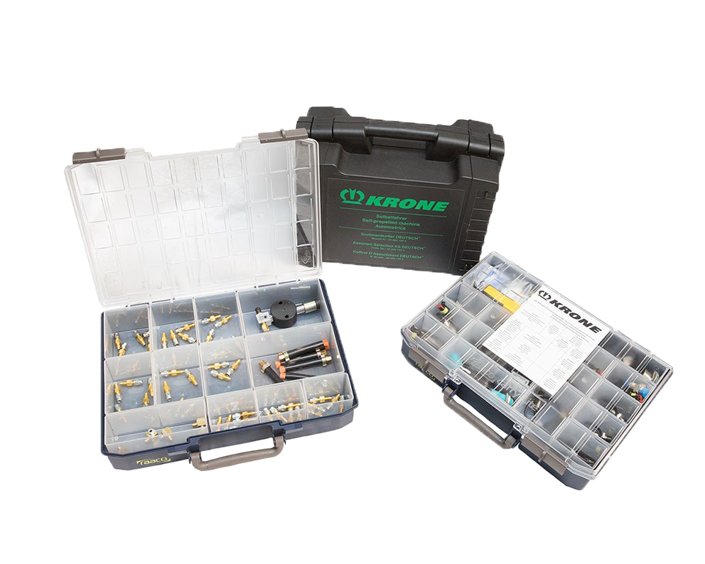 - Arbeitserleichternde Lösungen – auch für die Reparatur auf dem Feld, z. B. optimal zusammengestellte Sortimentskoffer mit den Ersatzteilen und den dazugehörigen (Spezial-)Werkzeugen für einen schnellen Teileaustausch