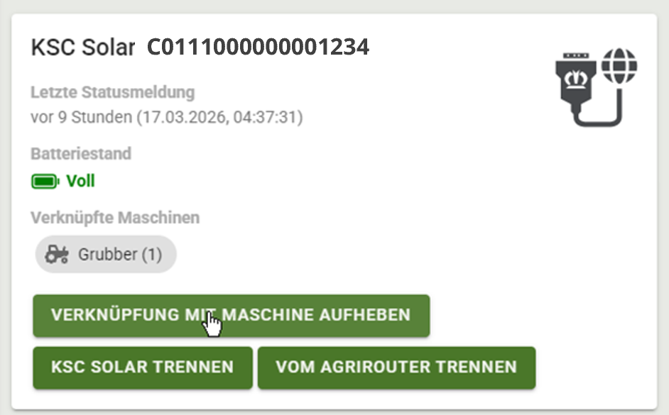 3. Wenn einzelne KSC Solar nicht angebunden werden sollen, können diese vom agrirouter getrennt werden