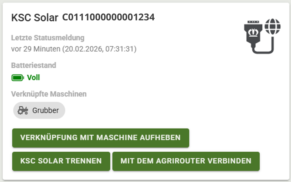 2. Nach erfolgreicher Verbindung und Einrichtung der Endpunkte im FMIS sind alle KSC Solar an den agrirouter angebunden