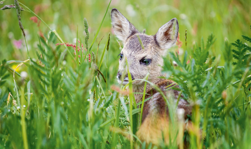 Vor und während der Grasernte können wir mit viel Rücksicht und Umsicht den Mähtod von Kitzen und brütenden Vögeln vermeiden.