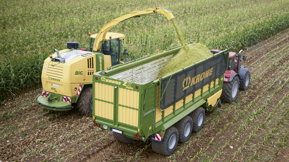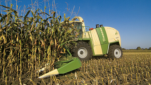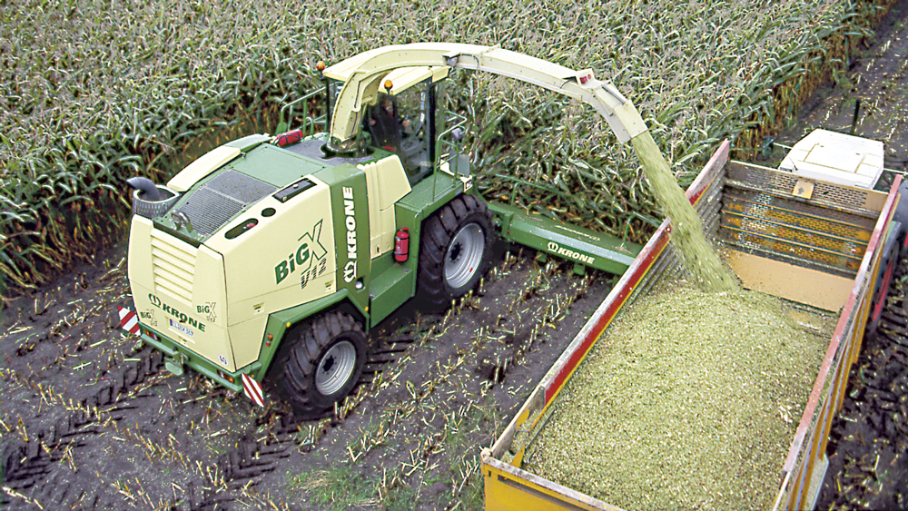 With over 200 units in operation worldwide, the development of the second generation is nearing completion. The new BiG X prototype is equipped with two synchronised six-cylinder engines and thus achieves a rated output of around 1000 hp. In parallel to the increased drive, KRONE has also increased the power of the forage harvester heads and equipped the chopper with a 14-row maize header, which corresponds to a working width of 10.50 metres. Since autumn 2005, KRONE has been offering AutoScan, a sensor that detects the maturity of the maize plants, for all EasyCollect maize headers. The electronic control of the chopper then regulates the chop length fully automatically. The benefits are obvious: green (moist) maize is automatically chopped longer so that the forage retains its structure. For brown (dry) maize, a shorter chop length is selected to achieve better compaction in the silage stack and prevent secondary fermentation.