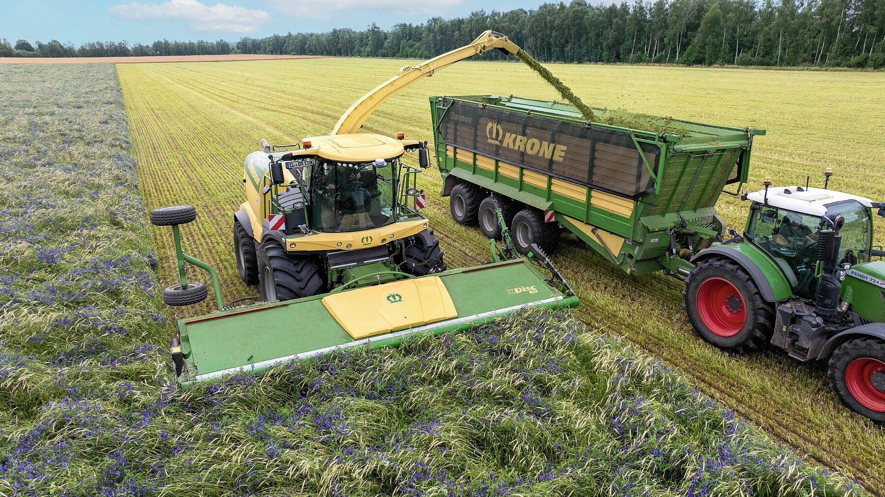 Every contractor is familiar with the following situation: To increase acreage output while maintaining high chop quality, more engine power is suddenly required. In 2019, KRONE developed the innovative XtraPower solution for such situations. Contractors can book 50 or 100 hp of additional engine power in just a few minutes via the new E-Solutions Shop. The additional power is activated online on the registered machine immediately after purchase and the operator can activate it as required. The driver only uses XtraPower when he really needs the additional power. If the harvesting conditions are such that no additional engine power is required, the driver selects the ‘Pause’ option directly in the operating terminal; and the machine immediately resets itself fully automatically to its original engine power.
