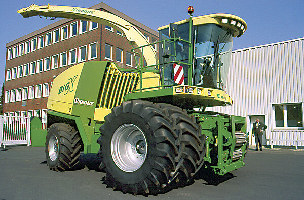 On 20 May 2000, it was time for the official presentation of the first KRONE forage harvester prototype called BiG X. The 540 hp forage harvester started its first test runs as a 40 km/h high-speed version. Despite the requirement that ‘form follows function’ (function is more important than appearance), it succeeded in creating a future-orientated design that was unanimously praised by the trade press. The prototype of the BiG X was created in 1999 and early 2000. All the functions, especially the new electronics, were gradually put into operation.