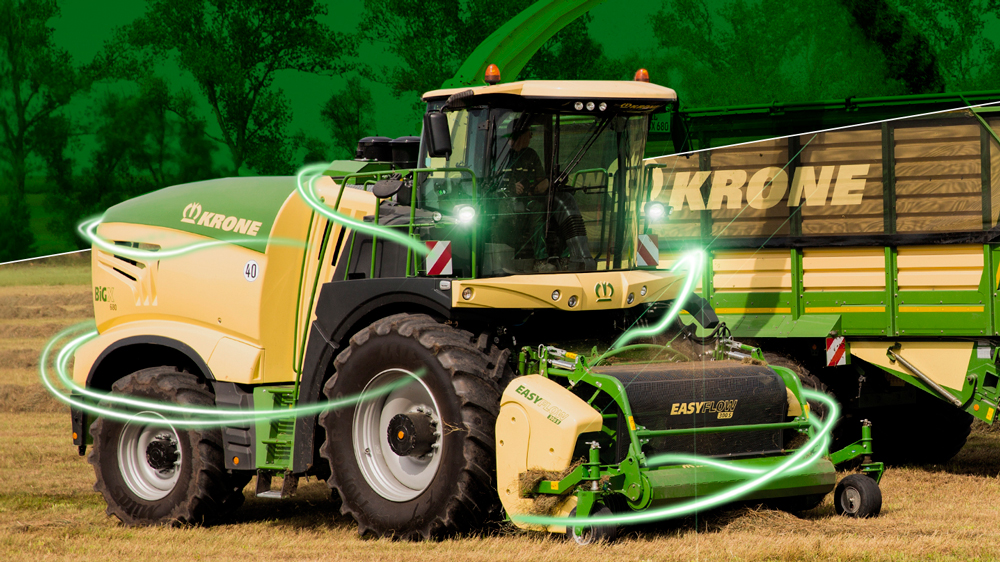 The large BiG X series is being expanded to include the two models BiG X 980 (979 hp) and BiG X 1080 (1074 hp). This is KRONE's response to the increasing global demand in the power range between 900 and 1000 hp. Both models are equipped as standard with the KRONE SmartConnect telemetry unit, which allows all machine data to be recorded in real time and transferred to KRONE SmartTelematics. All BiG X forage harvesters can now be optionally equipped with the GPS Guidance steering system, allowing them to be steered on autopilot with minimal overlap and full working width utilisation. In addition, the NIR Control dual sensor, which has been recognised several times by the DLG, can be used to measure and document ingredients when harvesting grass, maize or whole crop silage.