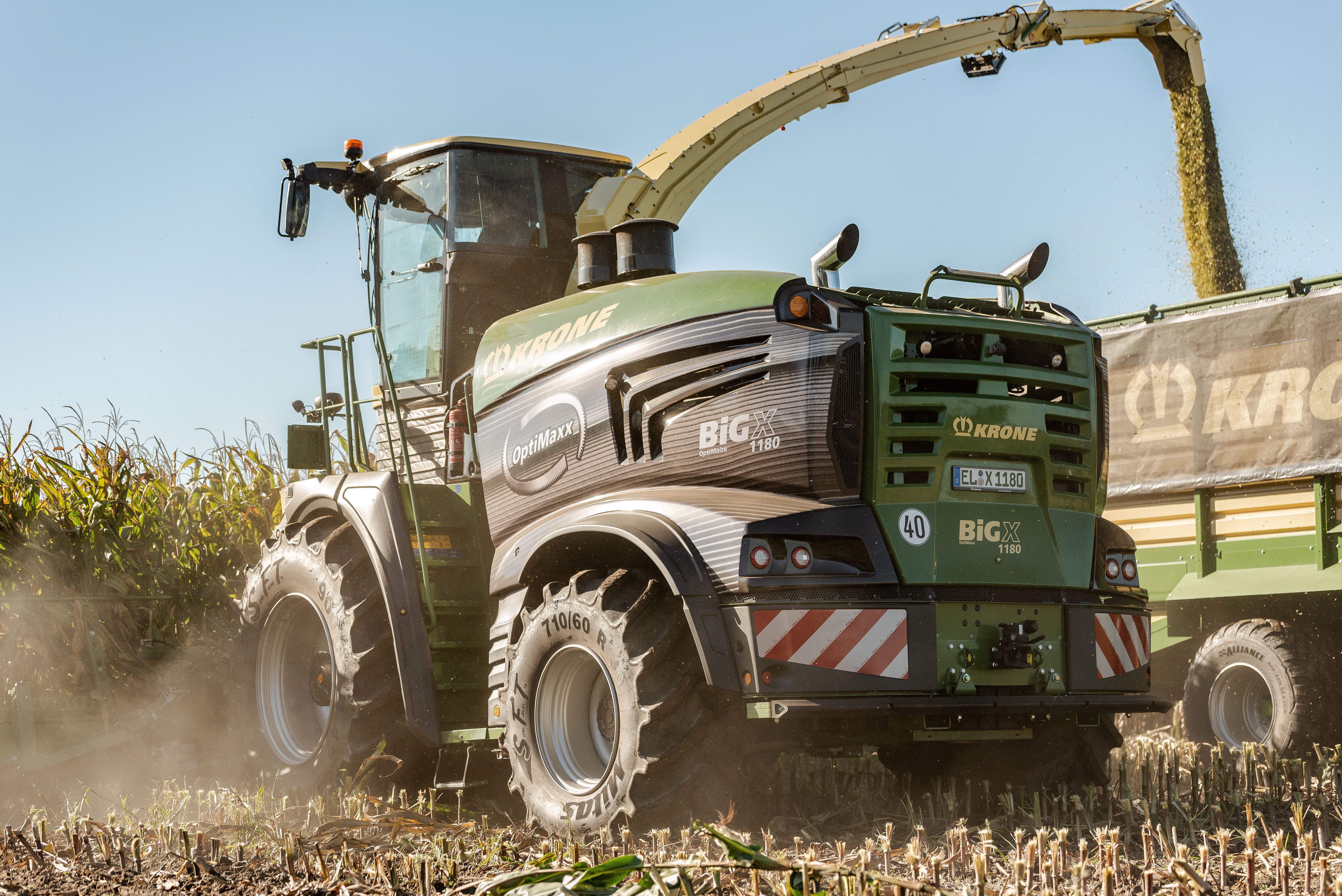 Stretching across generations, two series of harvesters are now available with a total of 10 models. While the small series of BiG X 480 to 630 covers the range of power from 490 to 653 HP, extremely powerful models with 687 to 1156 HP are available in the large series from BiG X 680 to 1180. All forage harvesters are equipped with the KRONE SmartConnect telemetry unit among other standard features. Thanks to the incorporation of the latest data management, the machine data recorded automatically in real time by this system can be sent to the KRONE SmartTelematics application for further processing or alternatively via the agrirouter to one of the many farm management-systems.
