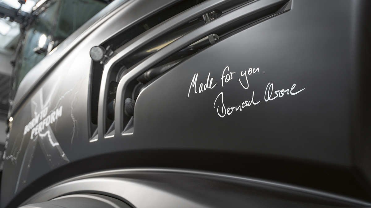 For 25 years, the name BiG X has stood for uncompromising performance and practical development. This anniversary model, which is also available in 1:32 scale, visibly translates this attitude into design and detail: The special matt black paintwork embodies technical sovereignty and deliberate understatement – a colour which does not have to be loud to show strength. The lettering "Born to perform", showcased with lightning-like accents, symbolises energy and determination. Bernard Krone's personal signature "Made for you" stands for responsibility, passion and authenticity. Together they form a promise which KRONE has been fulfilling for 25 years: Innovation by conviction.