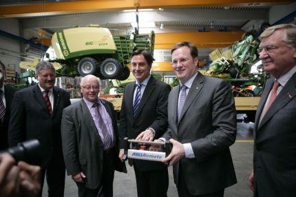 Immediately after the official inauguration of the logistics centre, McAllister had another duty to perform, one that he described as giving him “great personal satisfaction”: Together with Bernard Krone, he laid the foundation stone for a new training facility, situated just 200 metres from the main Krone logistics centre. Drive&Train is due to be completed by early 2013 and will host all future training courses at Krone. Every year, thousands of dealers from more than 40 export markets attend intensive courses extending over several days, learning how to operate the latest Krone products. The total investment in Drive&Train will amount to approximately €3 million.