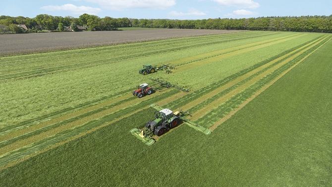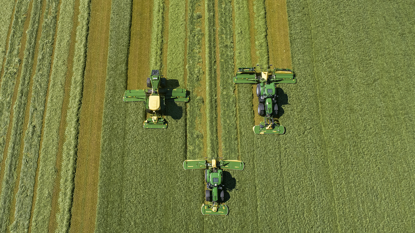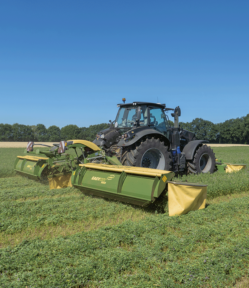 - Most efficient Butterfly combination in the market: EasyCut B 1050 with 10.45 m working width, dimensioned for front mounted mowers with 3.2 m to 4 m working width