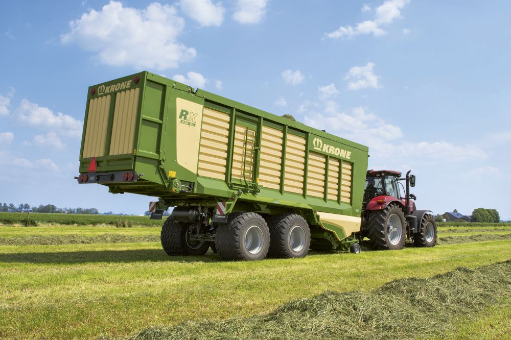 Característica de la nueva serie es el marco único, en el que se construyen todos los modelos, así como el pick up EasyFlow de 2.015 mm y el rotor de corte de 8 hileras. El ancho pick-up permite una recogida limpia del alimento incluso a altas velocidades y representa los máximos estándares de capacidad carga. Incluso en la serie RX apuesta Krone por sus patentadas púas dobles en forma de W, que garantizan un flujo continuo y un relleno uniforme de la unidad de corte y transporte sobre toda la anchura. De ello resulta una calidad de corte ejemplar, una mayor capacidad de absorción y una mejor descarga del remolque.