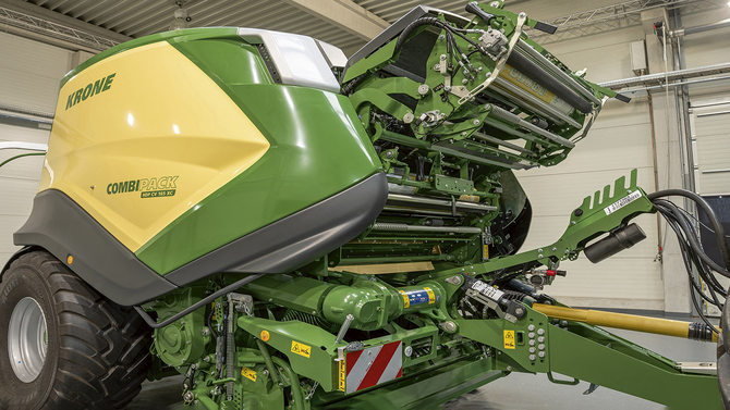 La KRONE CombiPack HDP redefine los estándares para la densidad de empacado, eficiencia y capacidad de transporte. Pacas estables con forma homogénea con máxima densidad de empacado, altos rendimientos así como forraje de la mejor calidad son el resultado del inteligente diseño de la tecnología, que se oculta en la cámara de pacas. Gracias a la alta capacidad de transporte – hasta un 30% más que las rotoempacadoras convencionales – la máquina procesa grandes cantidades en el menor tiempo posible.