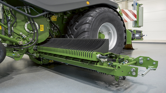La presión de apoyo del oprimidor de rodillos y el Pick-up se puede ajustar sin esfuerzo a través del resorte de tracción. El ajuste de cadenas sin necesidad de herramientas permite adaptar rápida y fácilmente la altura de trabajo del oprimidor de rodillos, para lograr el máximo rendimiento.