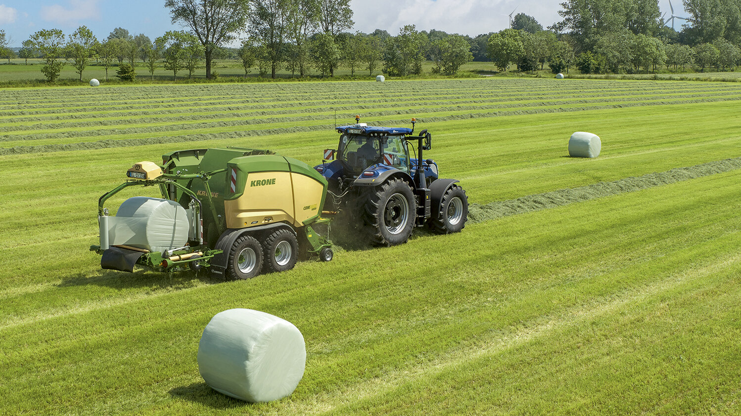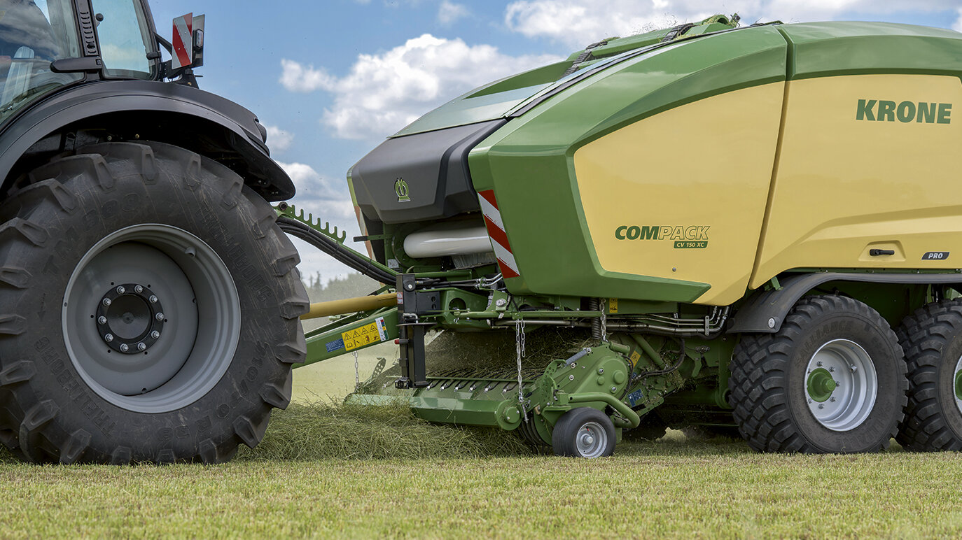 Estabilidad sin compromisos para los usos permanentes más duros y gran flexibilidad: las ComPack V y CV Pro de KRONE establecen nuevos estándares. Con ellas, el diámetro de pacas se puede ajustar de forma continua de 1,00 m a 1,50 m y la presión de empacado eléctricamente desde la cabina para adaptarse a los diferentes materiales a prensar y condiciones de uso.