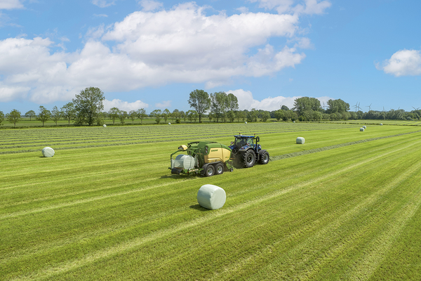 [Translate to ES:] Die Press-Wickel-Kombinationen CF und CV sind serienmäßig, die Pressen F und V optional mit Tandemachse ausgerüstet. Im Vergleich zur Einzelachse sind sie tragfähiger, haben einen ruhigeren Lauf und eine bessere Straßenlage. Dank ihrer größeren Aufstandsfläche verursachen sie auch weniger Spuren und schonen die Ernteflächen. Hier stehen zwei verschiedene Bereifungsgrößen zur Auswahl: 500/60 R 22,5 und 600/50 R 22,5.