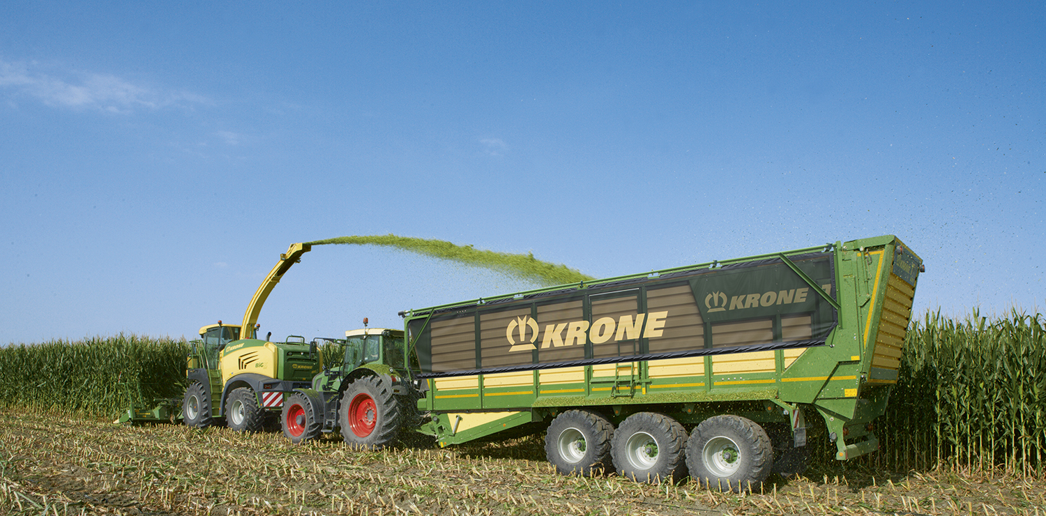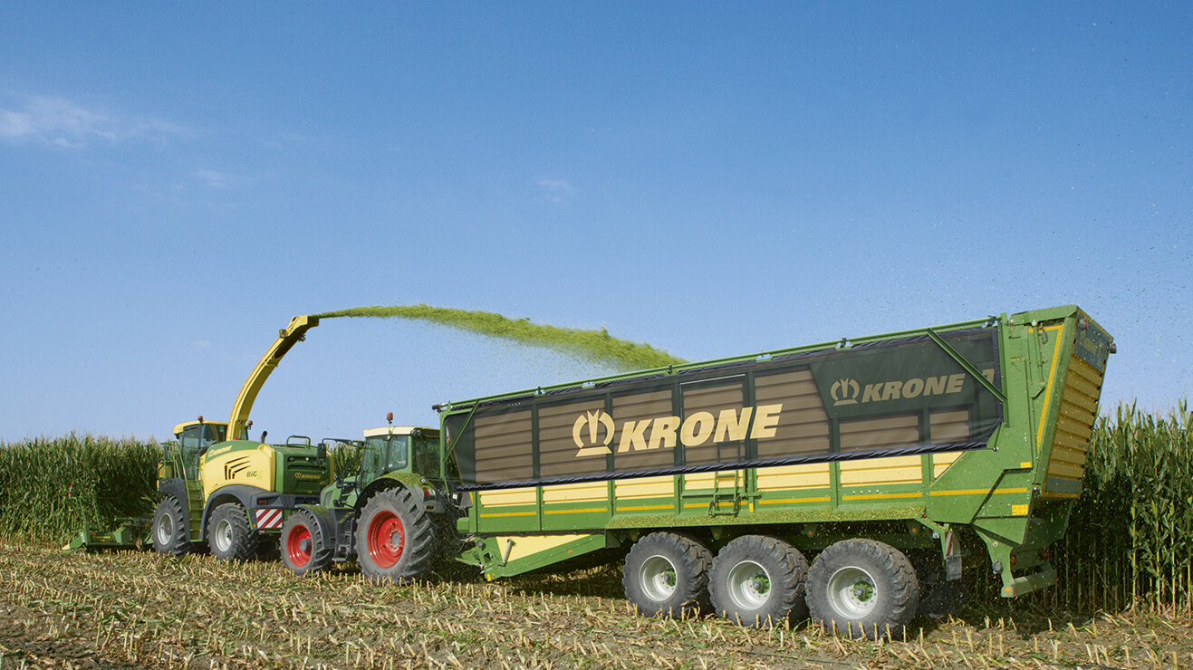 KRONE TX: el nombre es sinónimo de una logística de recogida de alto rendimiento, eficaz y fiable para la cosecha de forraje. El enorme volumen de transporte junto con un tiempo de descarga muy rápido convierten al carro de transporte de picado TX en el profesional absoluto de la cadena de picado.