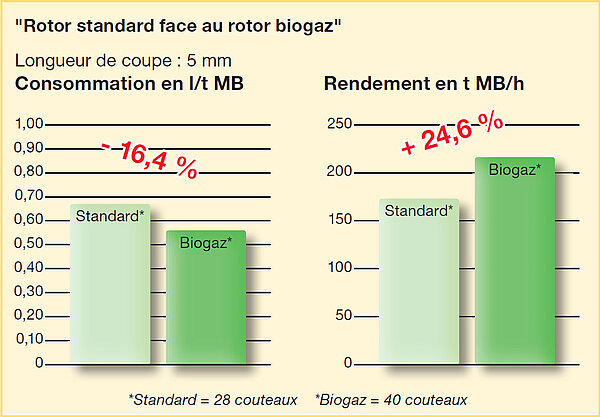 • Rotors MaxFlow et rotors Biogaz ­KRONE intégrant un nombre de couteaux différent pour une longueur de hachage adaptée à chaque exploitation